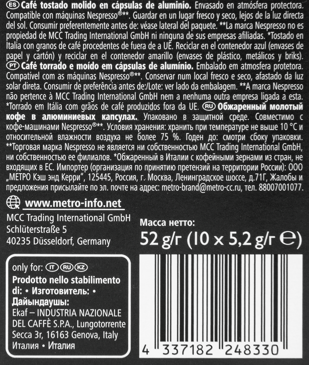 RIOBA Кофе в капсулах Intenso для кофемашин Nespresso 10шт, 52г