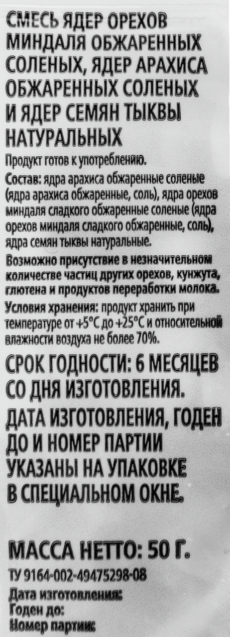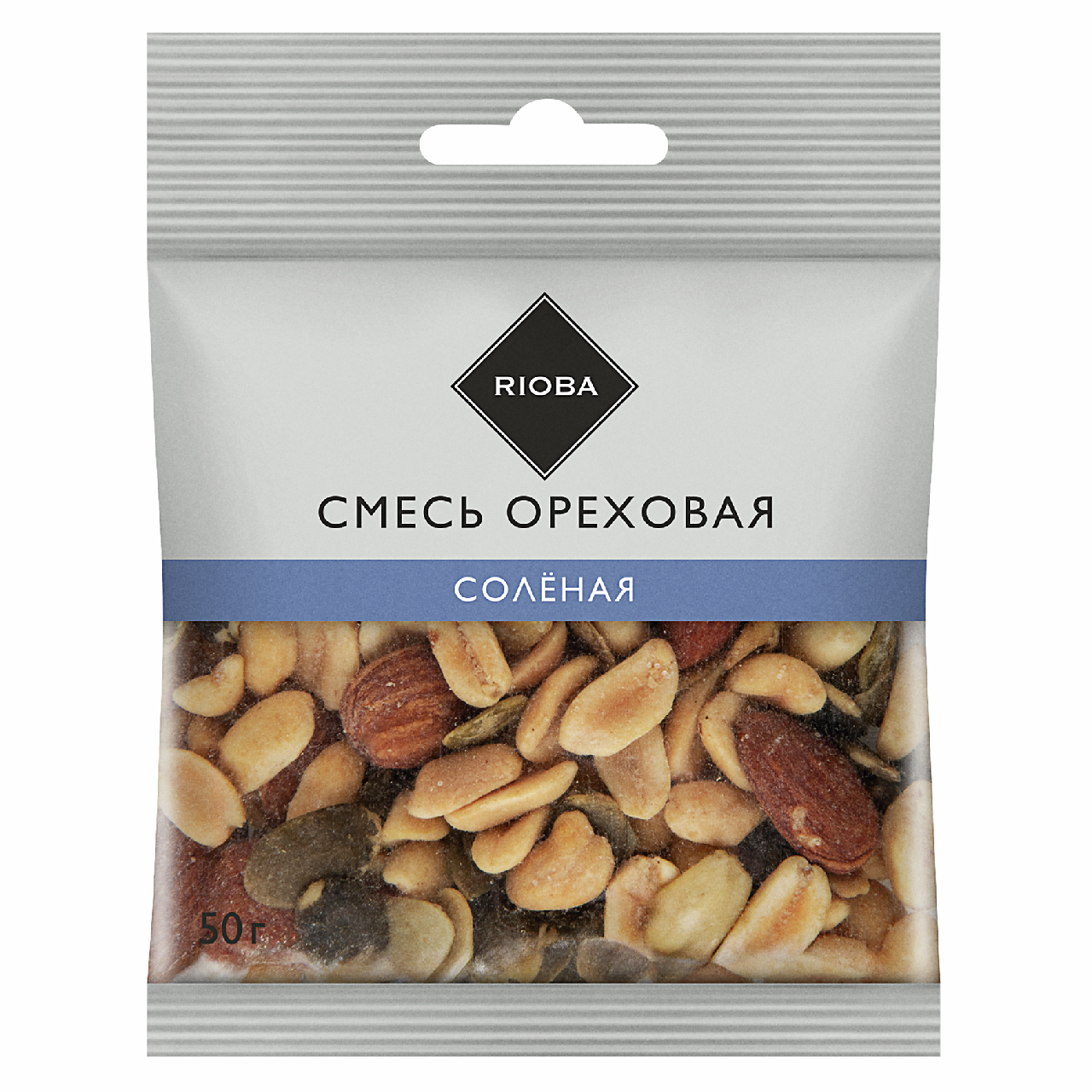 Смесь ореховая RIOBA соленая, 50г – сытный и полезный продукт, который по достоинству оценят поклонники здорового питания. Его можно использовать для быстрого перекуса и восстановления сил в течение дня, а также предлагать в качестве витаминного десерта к чаю или кофе. В состав смеси входят различные орехи. Эти продукты являются источником витаминов, содержат полезные микро- и макроэлементы. При включении в рацион они нормализуют пищеварение, положительно влияют на состояние сердца и сосудов, успокаивают нервную систему, ускоряют обмен веществ, повышают иммунитет. Продукт расфасован в порционные пакетики весом 50 грамм. Такая упаковка без труда поместится в небольшую сумку и даже карман одежды, поэтому ее удобно брать с собой, отправляясь в поездку, на работу, учебу или на долгую прогулку. RIOBA является эксклюзивным брендом, рассчитанным на бары, кафе и отели. Ассортимент включает все, что нужно для представителей бизнеса: от приготовления оригинальных коктейлей и свежего кофе до сервировки. В каталоге бренда можно найти широкий выбор кондитерских изделий и напитков, бакалею, молочную продукцию, материалы и посуды для кафе и многое другое. Вся продукция поставляется в удобных и эстетичных упаковках, которые полностью соответствуют потребностям сегмента HoReCa.