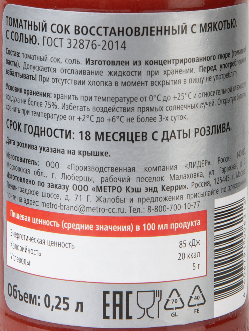 RIOBA Сок томатный с солью, 0,25 л – это гармоничное сочетание вкуса и пользы. В основу напитка легли отборные сочные, спелые томаты. Они очищаются и тщательно измельчаются в качественное овощное пюре, которое впоследствии смешивается с чистой водой. Томат содержит ценные минералы, витамины, флавоноиды и антиоксиданты. Напиток будет полезен для тех, кто желает сохранить красоту и молодость кожи, снизить риск образования опухолей и нормализовать работу иммунной и сердечно-сосудистой систем. За счет содержания пищевых волокон томатный сок помогает регулировать процесс пищеварения. Низкое содержание калорий и углеводов делает продукт хорошим вариантом для тех, кто придерживается здорового образа жизни. Сок принято подавать к столу в качестве самостоятельного напитка. Однако его также можно использовать как ингредиент коктейлей и различных блюд. Rioba – эксклюзивный бренд для баров, кафе и отелей. Обладая отличным качеством и запоминающимся дизайном, Rioba предлагает полное решение для бизнеса: от приготовления свежего кофе и оригинальных коктейлей до их сервировки.