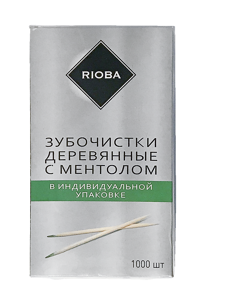 RIOBA Зубочистки деревянные с ментолом в индивидуальной упаковке 1000шт