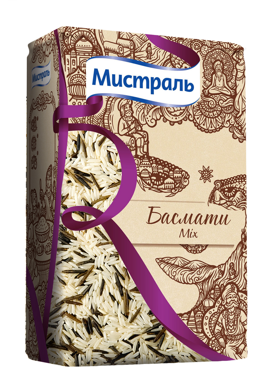 Рис Басмати MIX смесь белого ароматного и дикого риса в пакетиках МИСТРАЛЬ, 8х62,5 г
