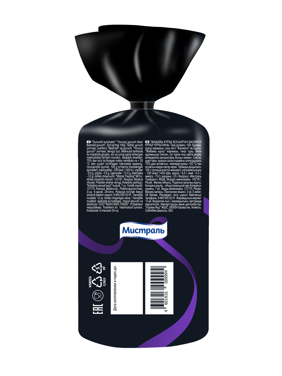 Крупа рисовая: рис белый ароматный Басмати, крупа Рис дикий, соль морская.