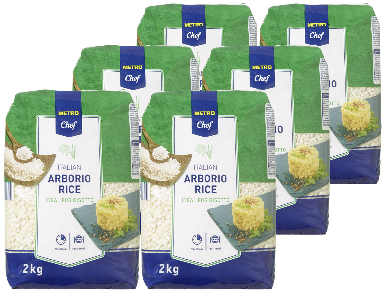 Рис METRO Chef Арборио, 2 кг содержит много полезных веществ: сложные углеводы, витамины группы В и такие минералы, как йод, фосфор, калий, медь, магний, кальций и железо. Подобный состав обеспечивает прекрасную усвояемость и насыщение организма на долгие часы, поставляя в мышечные ткани большое количество энергии. Регулярно употребление в пищу риса способствует снижению уровня сахара и жиров в организме без потери энергии. Зерно выращивается на органически чистых территориях без использования опасных химических удобрений и пестицидов. Рис долго сохраняет безупречный вкус и высокое качество. Он прекрасно подходит для гарниров, плова, салатов и начинок.
