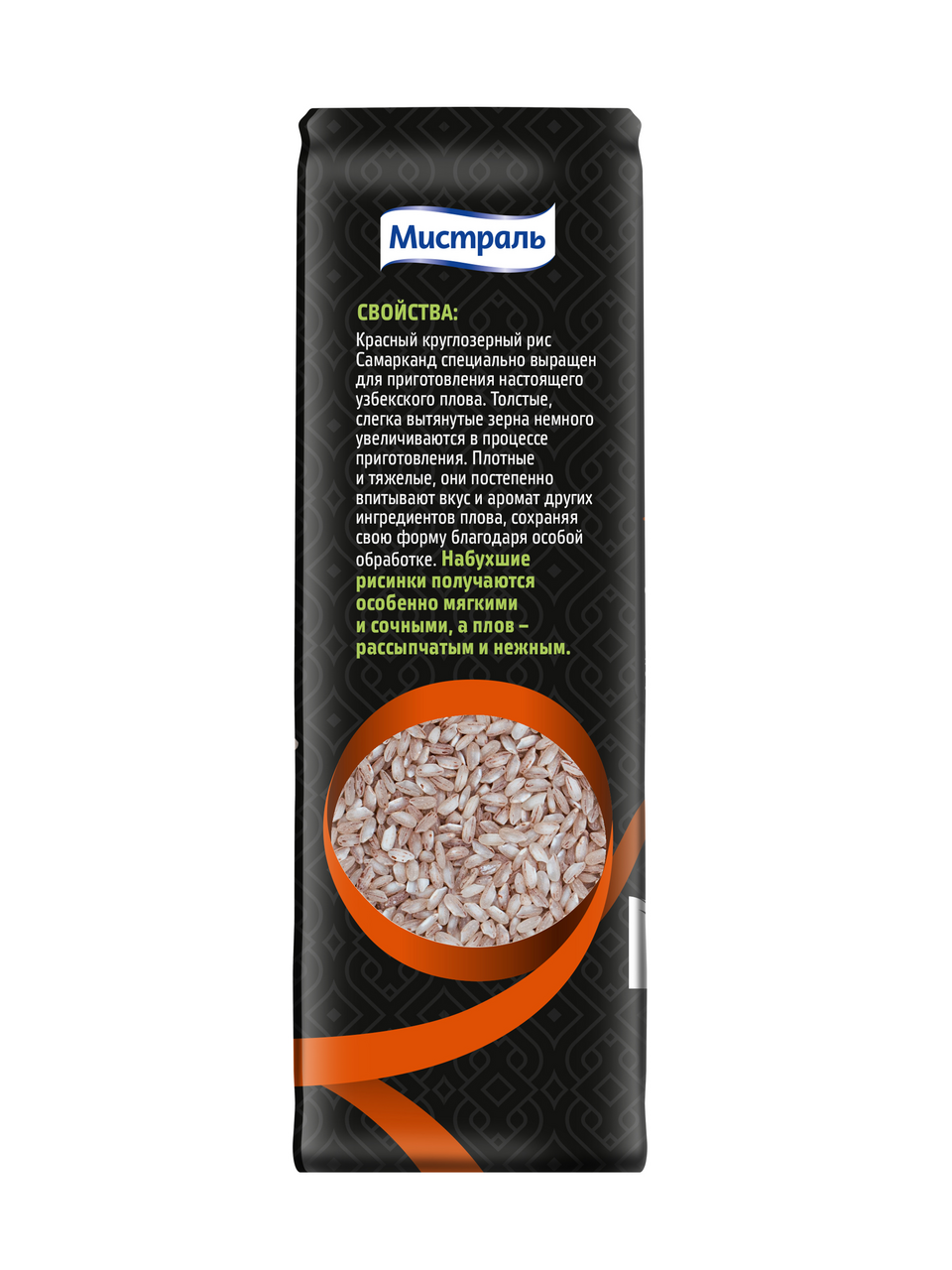 Рис Самарканд Мистраль Самарканд содержит оптимальное количество крахмала, который способствует улучшению микрофлоры кишечника и нейтрализует негативное влияние вредных веществ на организм. Комплекс полезных витаминов в сочетании с калием и натрием обеспечивает укрепление сердечно-сосудистой и нервной систем. Отборное зерно произведено специально для создания классического восточного плова. Впитывая аромат и вкус других ингредиентов блюда, рис готовится в течение 20 минут на медленном огне. После термической обработки крупа разбухает, существенно увеличиваясь в объеме, однако при этом остается рассыпчатой, не теряет форму и цвет.