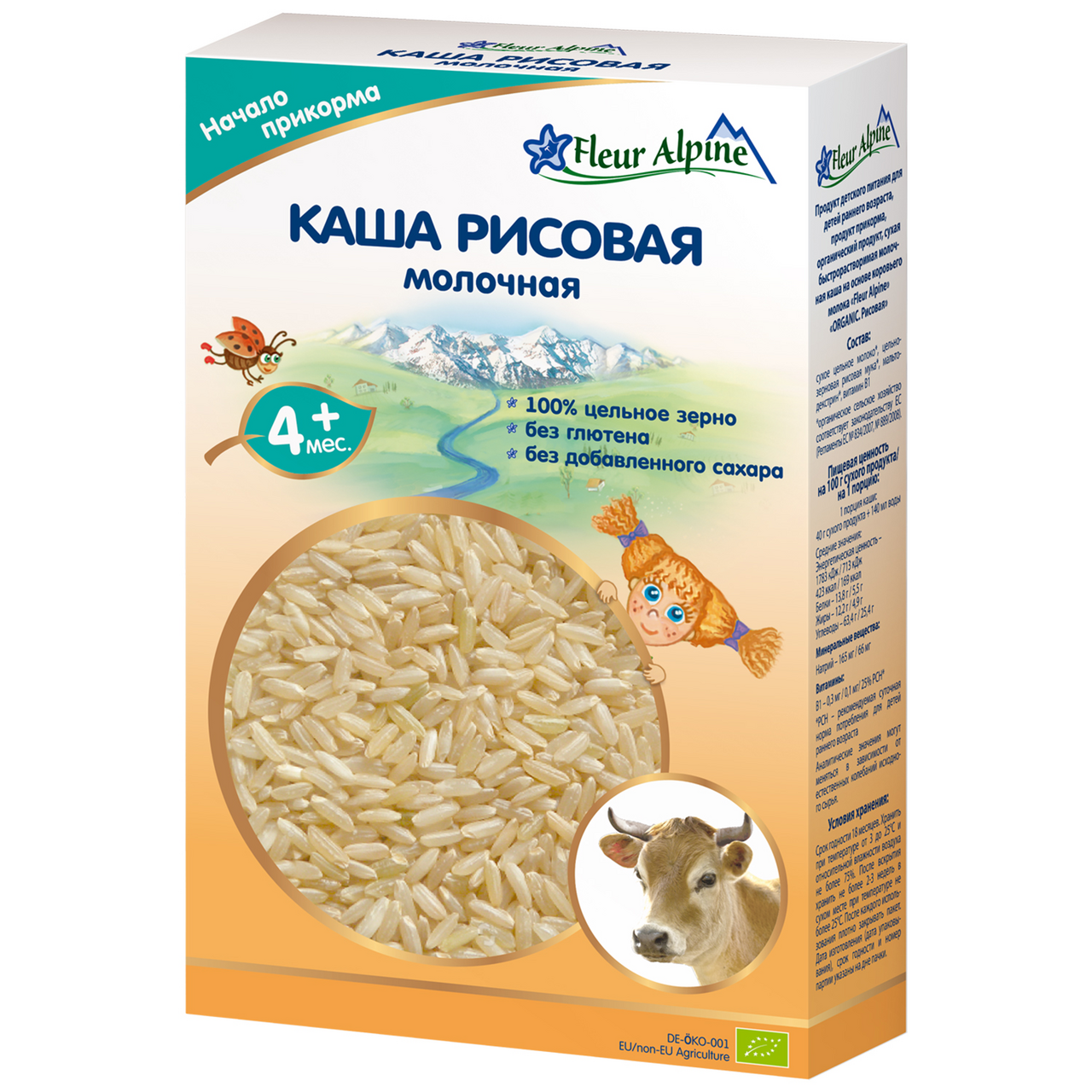 Каша молочная Fleur Alpine рисовая для детей старше 4 месяцев. Цельное зерно, из которого изготовлена каша, содержит натуральные витамины, минералы и пищевые волокна. Бережная технология производства позволяет сохранить ценные нутриенты. Цельное молоко от коров, находящихся в свободном выпасе в Баварских Альпах, придает каше натуральную сладость, приятный молочный вкус и аромат, способствует длительному насыщению. Разводится легко, быстро и без комочков. Нежная, воздушная консистенция готовой каши в виде сугробиков напоминает снег, который ложится на поверхность небольшими пышными неровностями.