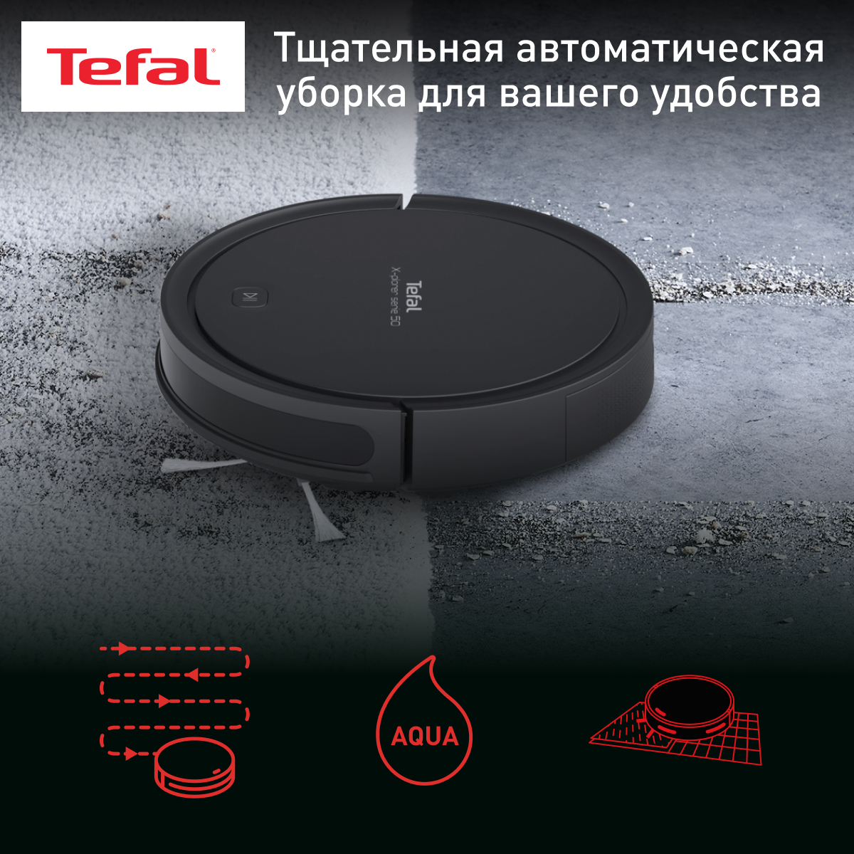 Робот-пылесос Tefal RG7375WH с системой Aqua Power способен проводить сухую и влажную уборку одновременно. Главной особенностью этого домашнего помощника стала высокоточная система навигации Smart Exploration 4.0, представленная инфракрасными сенсорами и встроенным гироскопом. Благодаря ее наличию прибор автоматически собирает пыль на всей поверхности пола. С интуитивным интерфейсом в приложении Tefal Robots легко разберется любой пользователь. С его помощью вы сможете установить мощность всасывания, назначить расписание уборки, следить за состоянием устройства и многое другое. Предусмотрена поддержка голосового ассистента Алиса от Яндекса. Приобретение пылесоса-робота Tefal RG7375WH станет особенно актуальным для владельцев домашних животных благодаря присутствию в оснащении вы��окоэффективной турбощетки Animal Turbo Brush. Она хорошо собирает волосы и шерсть, ликвидируя беспорядок, учиненный питомцами. Электронный бесщеточный мотор гарантирует неизменную мощность всасывания.