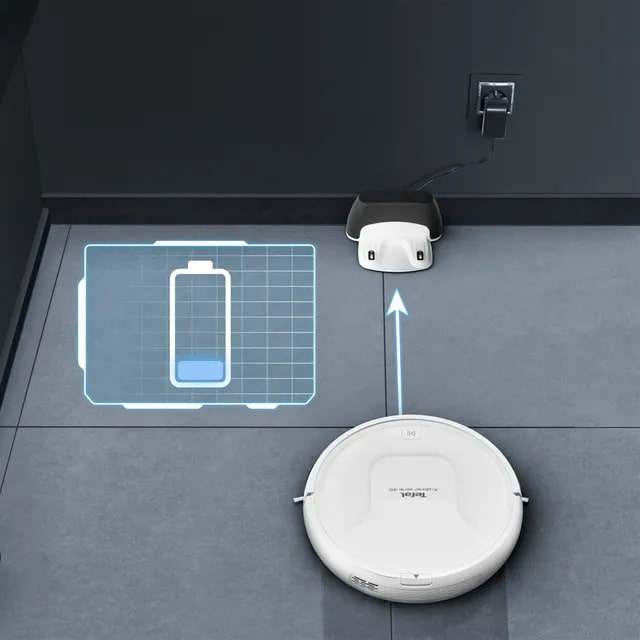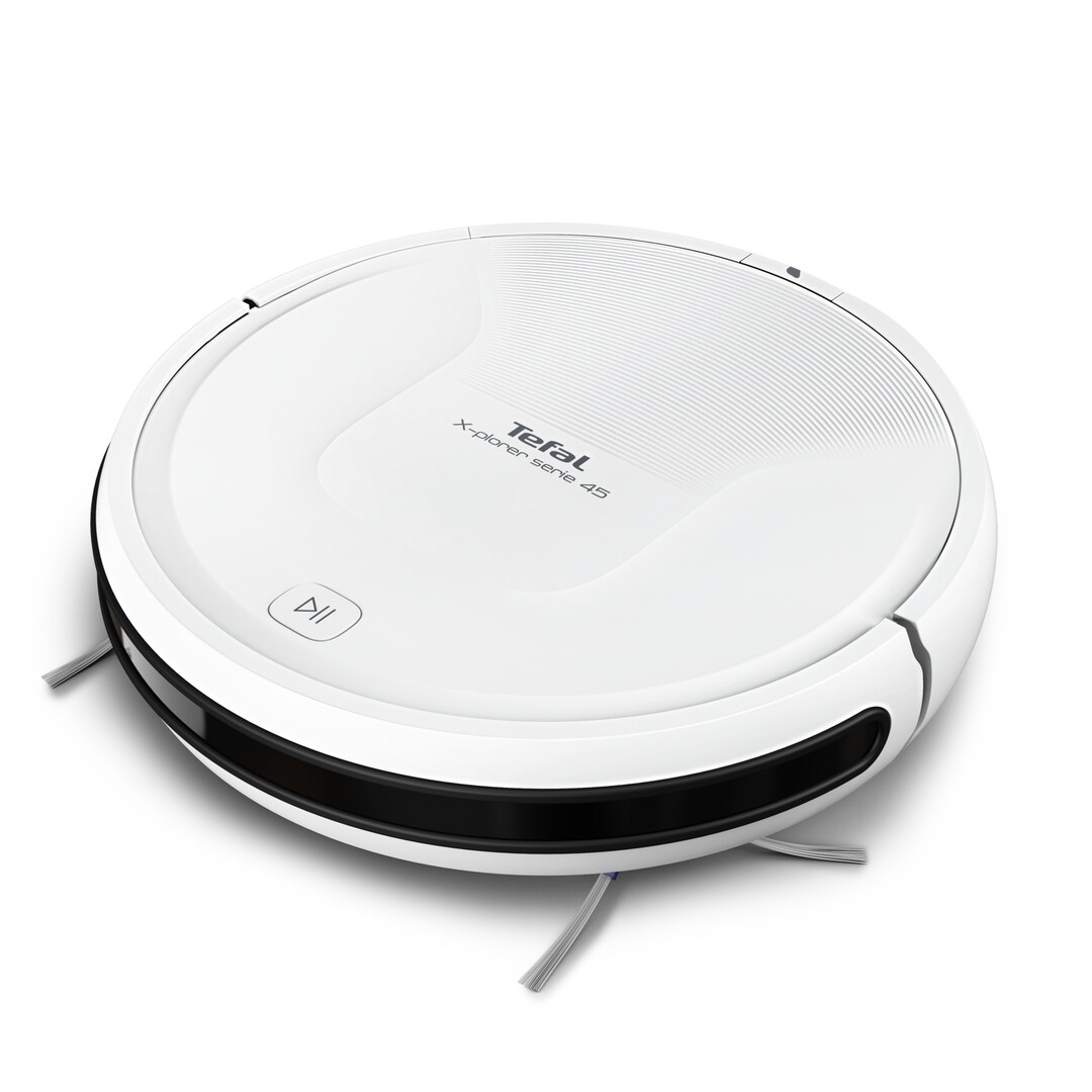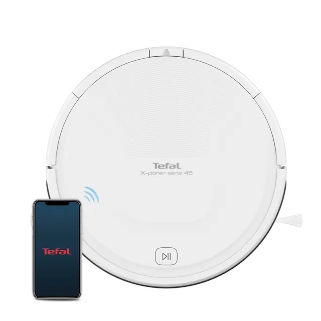 Робот-пылесос Tefal RG8227WH — удобное решение для сухой уборки всего дома. Он поддерживает идеальную чистоту и не требует вмешательства человека в ходе уборки. Модель запрограммирована на три режима навигации и оснащена усовершенствованными сенсорами. Они предотвращают столкновение девайса со стенами, мебелью. Также устройство не засасывает шторы, гардины, умеет объезжать мелкие предметы, разбросанные по комнате (носки, кабели, детские игрушки). Управлять роботом-пылесосом можно с помощью сенсоров на корпусе или посредством смартфона. Для этого необходимо предварительно установить фирменное приложение и синхронизироваться с девайсом через Wi-Fi. Начинать уборку можно даже в тот момент, когда дома никого нет. Устройство будет поддерживать чистоту и гигиену, пока вы на р��боте, отлучились по личным делам или в длительном отъезде. Современный и функциональный робот-пылесос обладает качественной сборкой и современным дизайном. Он гармонично вписывается во все стили интерьера. Компактные размеры позволяют хранить девайс в любом месте. Его удобно переносить или прятать в ящик шкафа. Устройство оснащается мощным двигателем с высокой производительностью, системой навигации. Оно хорошо ориентируется в помещении и автоматически составляет оптимальный маршрут уборки. Несколько режимов помогают выбирать наиболее подходящий: Auto, точечный, уборка по периметру, Boost. Пылесос легко справляется с мелким и крупным мусором на кафельной плитке, паркетной доске, ламинате и коврах. В зависимости от степени загрязненности модель автоматически настраивает силу всасывания. Встроенный контейнер для пыли легко снимать и очищать. С таким девайсом в помещении легче дышать, более качественным становится сон. Фильтр тонкой очистки задерживает мельчайшие частицы пыли и аллергенов. Это предотвращает от большинства заболеваний дыхательных путей. На корпусе модели есть дисплей, на котором отображается информация о текущем статусе уборки. Тут также можно найти информацию про заряд батареи и другие параметры.
