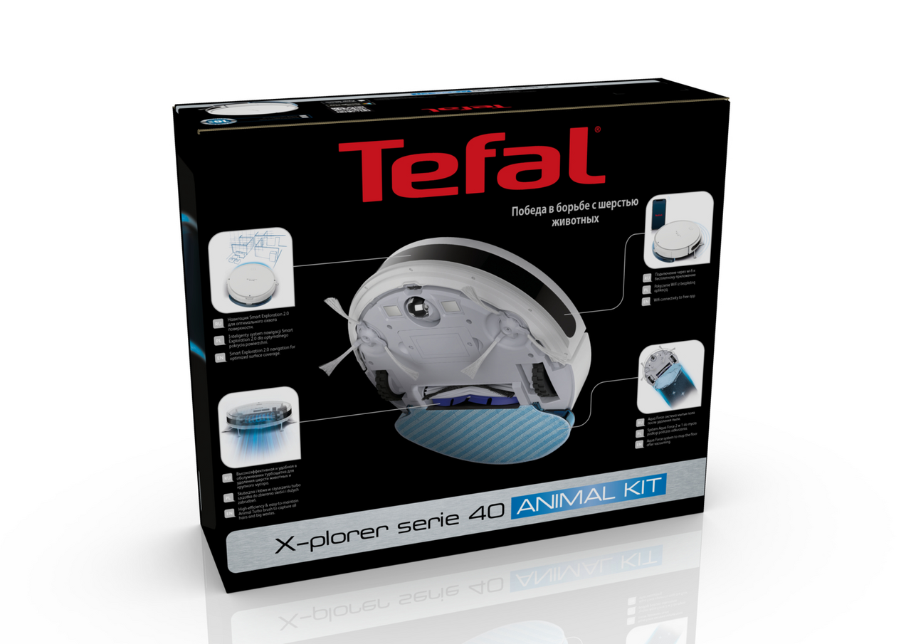 Робот-пылесос Tefal X-plorer Serie 40 эффективно собирает пыль и шерсть домашних животных и одновременно моет полы благодаря системе Aqua Force, гарантируя двойную эффективность уборки, пока вы занимаетесь своими делами. Высокоэффективная щетка Animal Turbo Brush сочетает в себе два материала разной текстуры и эффективно собирает шерсть и крупные частицы пыли. Щетку легко чистить, даже если волосы и шерсть закрутились вокруг нее. Навигационная система Smart Exploration 2.0 обеспечивает тщательную уборку во всем доме. Магнитная лента, которая входит в комплект, поможет оградить зону работы робота-пылесоса. С помощью удобного приложения вы можете включать и выключать устройство и создавать расписание уборки в любое время, где бы вы ни находились.