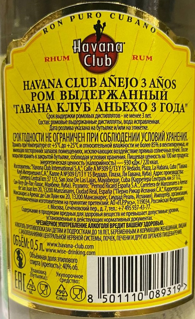 Ром Havana Club 3 года, 0.5л