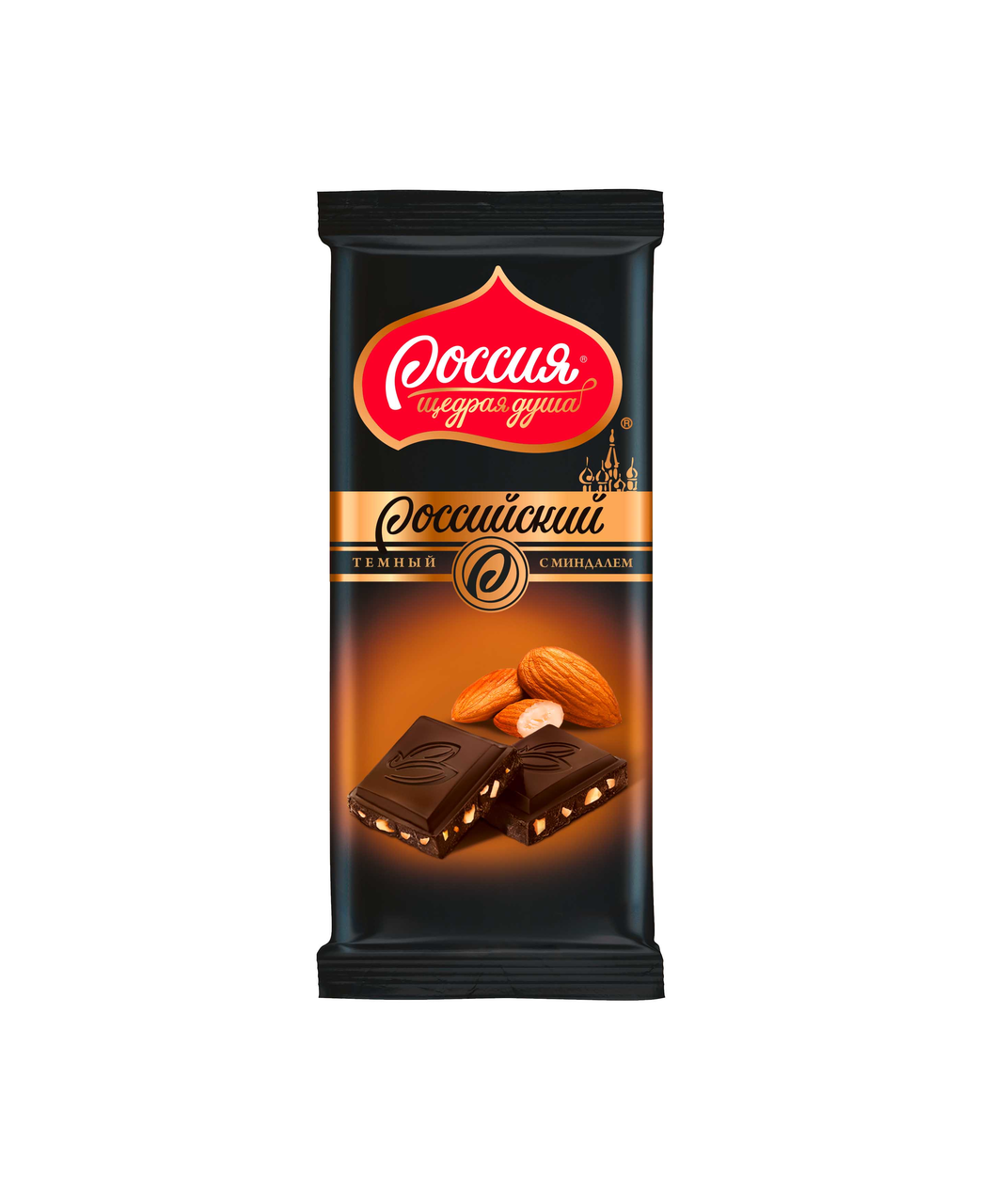 Шоколад РОССИЙСКИЙ темный с миндалем, 90 г