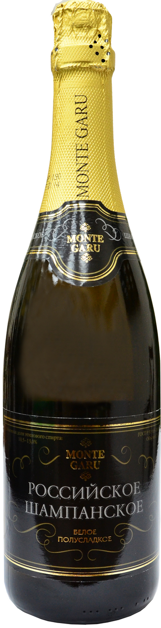 Российское шампанское белое "Монте Гару" полусладкое 0.75л. (корка)