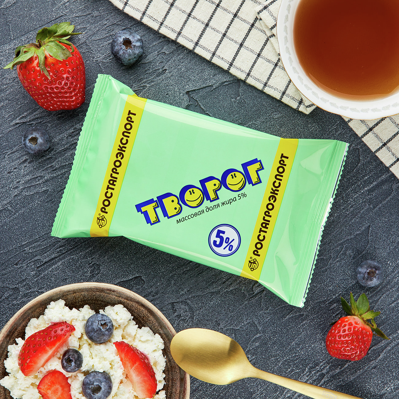 Творог Ростагроэкспорт, без заменителя молочного жира, 5%, 180 г производится по классической технологии, из натурального молока и закваски, которая обеспечивает его створаживание. После чего лишняя сыворотка удаляется и получается вкусный и полезный продукт, полностью натуральный, без заменителей молочного жира, ГМО и других добавок. У этого творога приятный вкус и хорошая текстура. Его можно охарактеризовать как продукт с умеренным содержанием жира. В составе присутствуют необходимые для нормальной работы организма витамины и микроэлементы. Он является источником кальция, необходимым для костей, зубов и ногтей. Творог может употребляться в самых разных вариантах. В него добавляют сметану, йогурты, варенье и джемы, ягоды, фрукты и сухофрукты, орехи, изюм и другие ингредиенты. Довольно часто творог становится незаменимым компонентом других блюд. Из него делают сырники и запеканки, используют в качестве начинки для сладкой выпечки и вареников. Очень вкусными получаются булочки, пироги и печенье из творожного теста. Этот продукт может стать отличной основой для крема или десерта. Этот продукт одинаково любят взрослые и дети, он обязательно должен присутствовать в повседневном рационе в том или ином виде.
