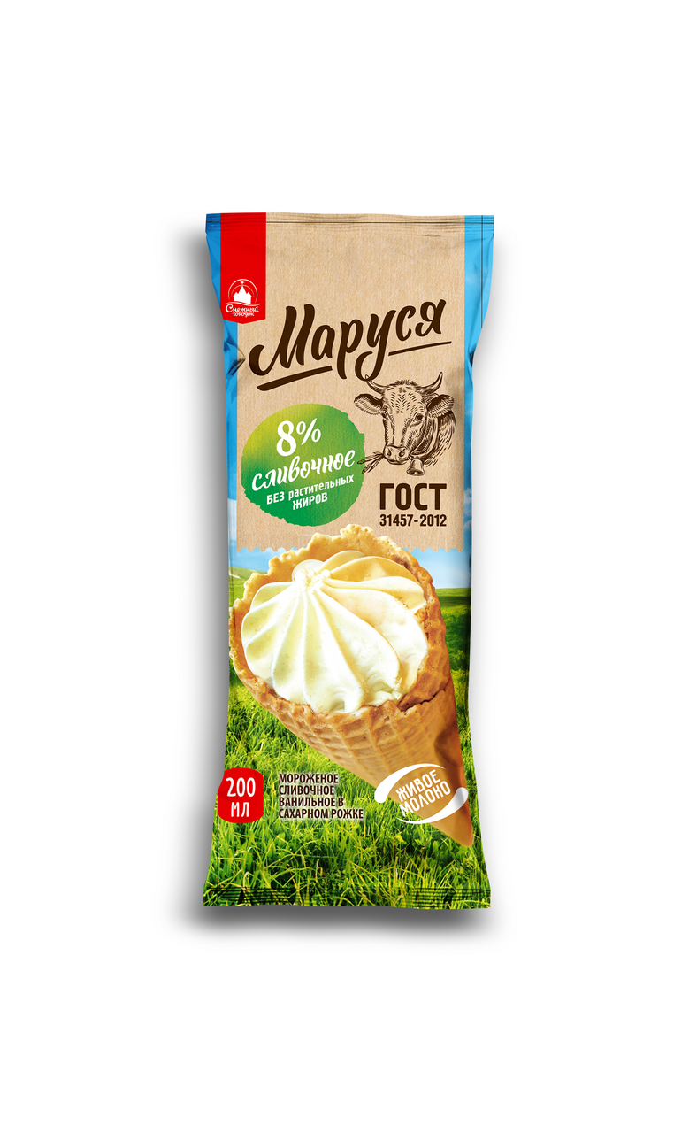Мороженое пломбир Маруся Ванильное в вафельном рожке, 100г