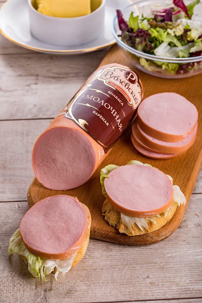Колбаса Рублевский Молочная вареная, 450г представляет собой нежное мясное изделие, которое приготовлено с соблюдением всех стандартов по особому рецепту из натуральных ингредиентов высокого качества – отборной свинины, говядины с добавлением различных пряностей. Продукт отличается нежным, мягким вкусом, плотной, упругой текстурой и приятным ароматом, который может понравиться как взрослым, так и детям. В нарезанном виде колбаса будет аппетитно смотреться на повседневном или торжественном столе. Мясное изделие хорошо гармонирует с хлебом, сыром, овощами, маринованными огурцами, зеленью и т. д. Из него можно приготовить вкусные сэндвичи и бутерброды, которые станут идеальным вариантом завтрака или перекуса во время перерыва на работе, учебе. Из пр��дукта получаются вкусные супы, выпечка, вторые блюда, холодные и горячие закуски. Колбасу можно жарить на сковороде с добавлением небольшого количества масла или запекать в духовом шкафу с тестом. Она не содержит вредных добавок. Выпускается в искусственной оболочке с привлекательной этикеткой. Рекомендуется хранить при температуре 0C до +6C и относительной влажности воздуха не более 78%. Приобрести колбасу Рублевский Молочную вареную, 450г можно в торговом центре METRO.Рублевский – это популярная торговая марка, которая существует на рынке уже более 20 лет, начиная с 1999 года. В настоящее время в ассортимент выпускаемой продукции входят более 180 разных наименований: колбасы, сосиски, сардельки, ветчина, копчености, паштеты и многое другое. Завод являе��ся обладателем золотых и серебряных медалей на международных выставках. К отличительным особенностям бренда относятся: использование в производстве отборного сырья, новых технологий, старинных рецептов, строгий контроль качества, соответствие стандартам.