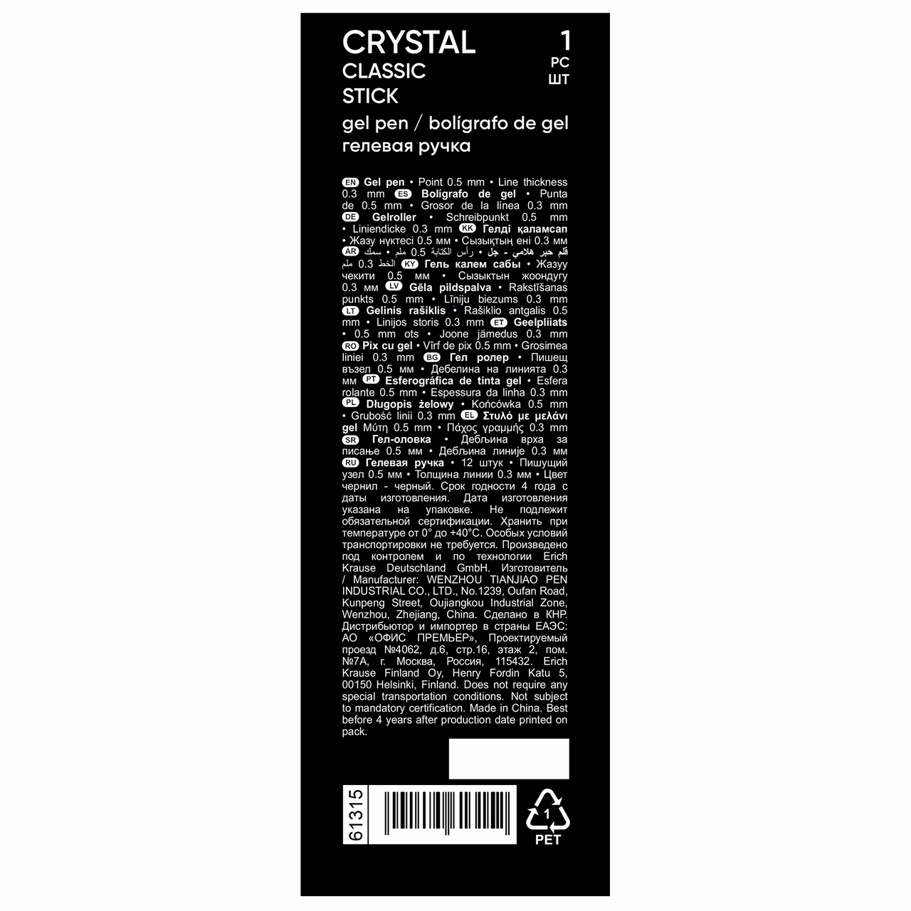 Ручка гелевая Erich Krause Crystal Stick Classic цвет чернил черный, 1шт