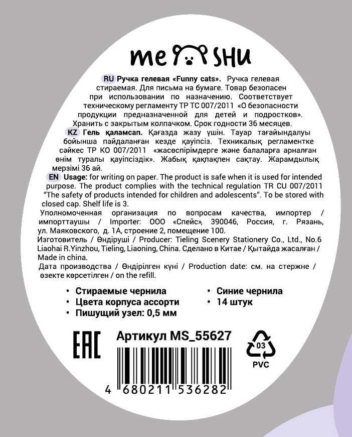 Ручка гелевая Meshu Funny Cats стираемая синяя автоматическая, 0.5мм