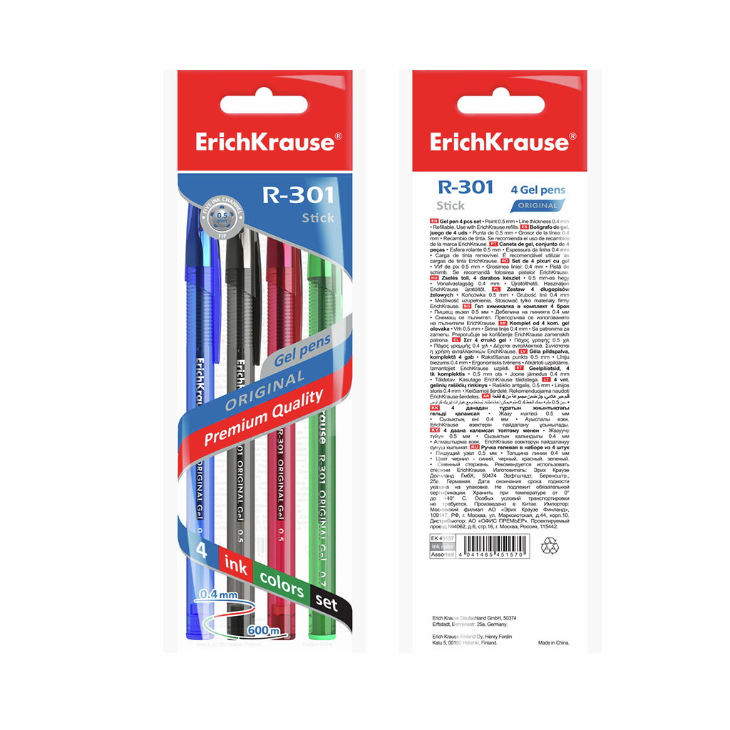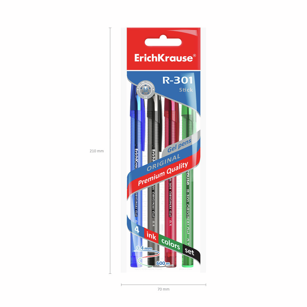 Ручка Erichkrause Original гелевая R-301 ассорти, 4шт