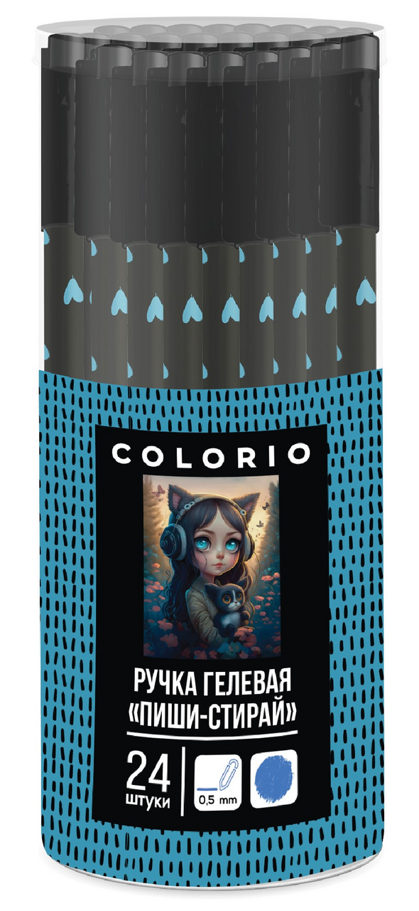 Ручка гелевая Colorio Сердечки стираемая софт-тач, 0.5мм