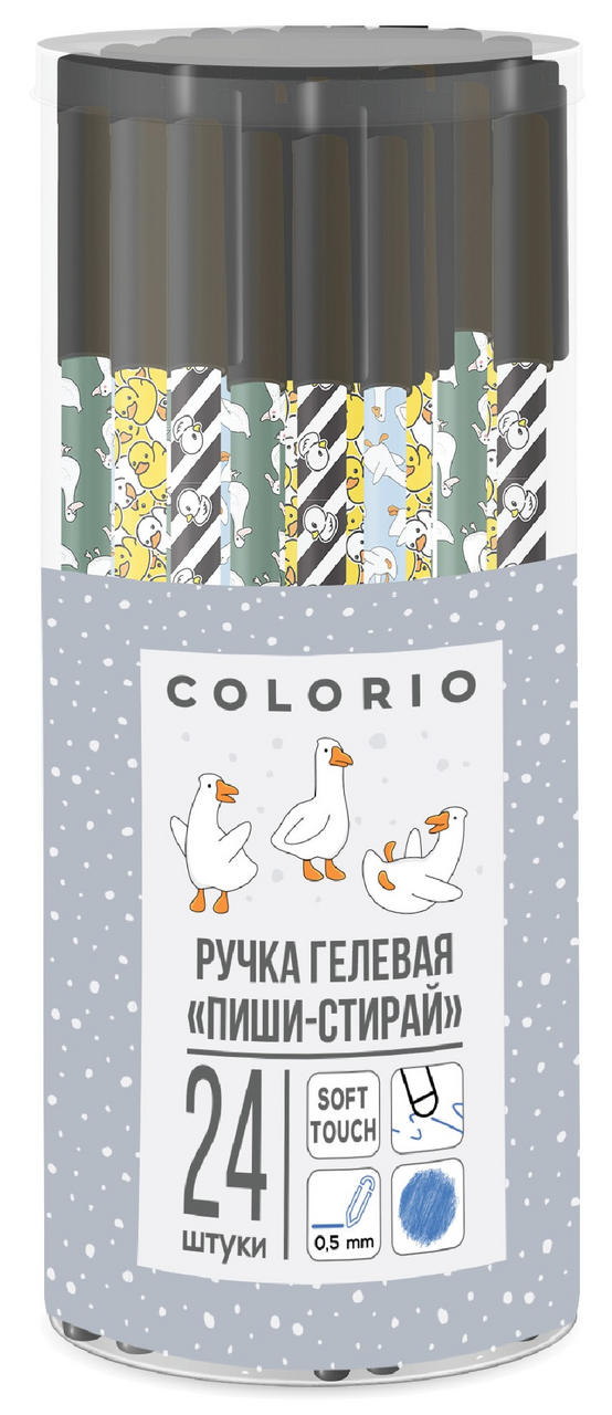 Ручка гелевая Colorio Утки стираемая софт-тач, 0.5мм