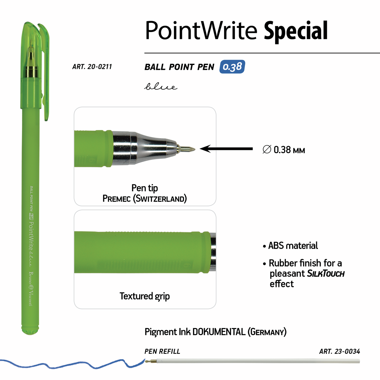 Ручка Bruno Visconti Point Write Special, 0.38мм - если для вас важно супертонкое, мягкое письмо, то ручки PointWrite от Bruno Visconti идеальный вариант. Благодаря немецким пигментным чернилам (dokumental) и пишущему узлу диаметром 0,38 мм от швейцарской компании premec ручка легко скользит по поверхности бумаги, оставляя тончайшую и беспрерывную линию. Антискользящее бархатистое покрытие Soft Touch на ее корпусе обеспечит максимальный комфорт в работе, снимая напряжение кисти.
