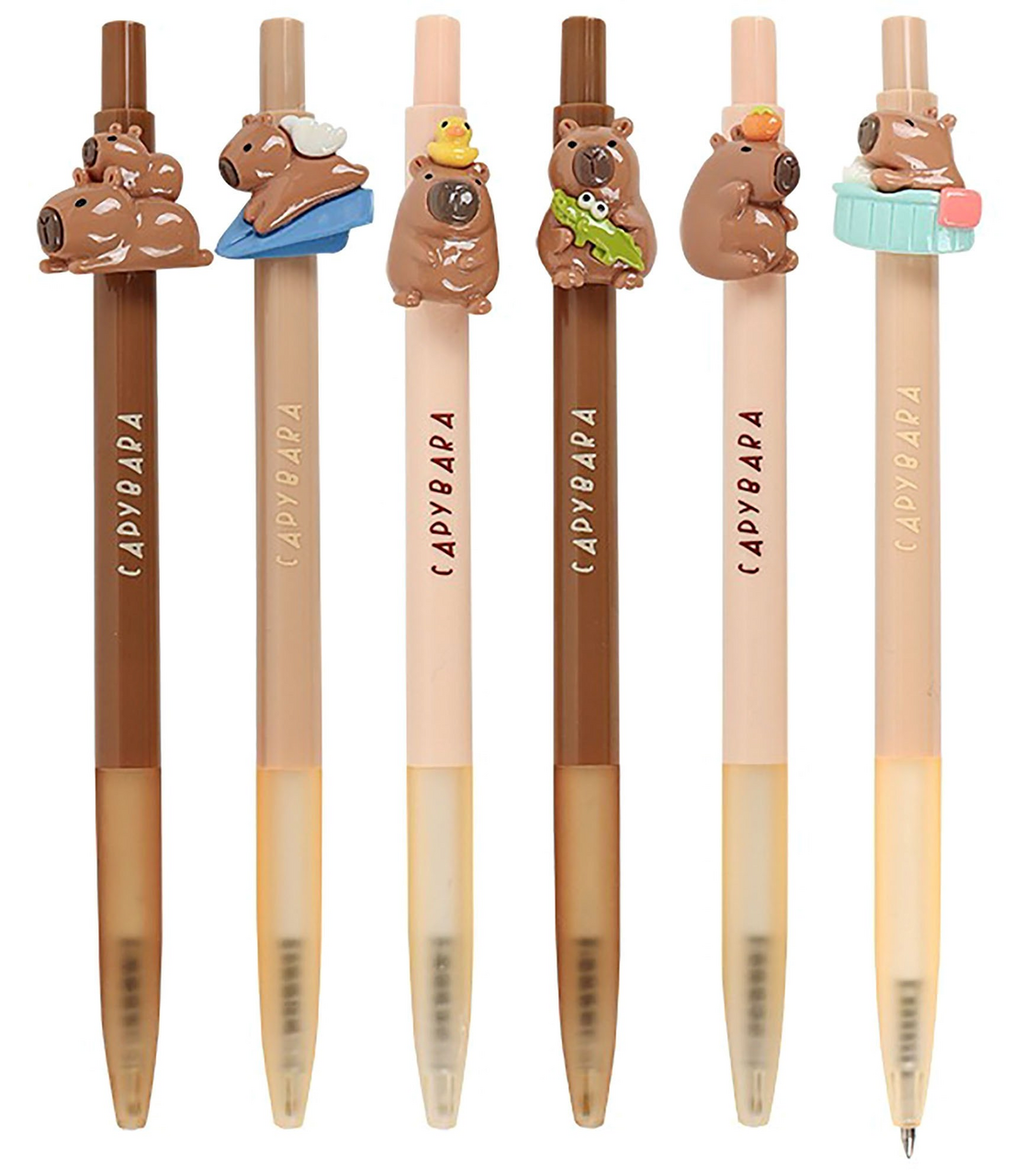 Ручка шариковая автоматическая Капибара на отдыхе. Цвет пасты синий. 36шт в дисплее. Подойдёт для учёбы, конспектов и творческих заметок.