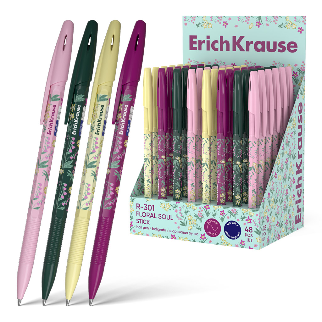Ручка шариковая Erich Krause Floral Soul синяя Stick R-301, 0.7мм