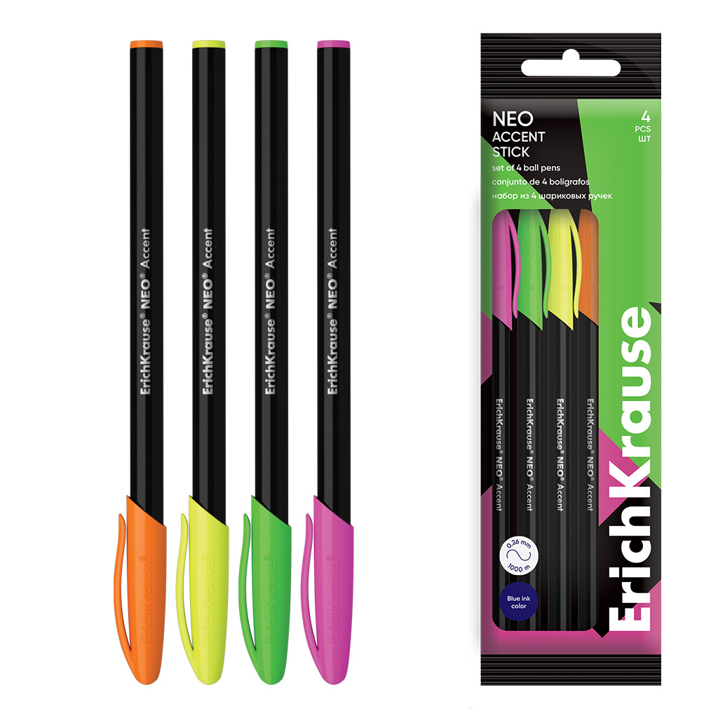 Ручка шариковая Erich Krause Neo Stick 0.7, 4шт