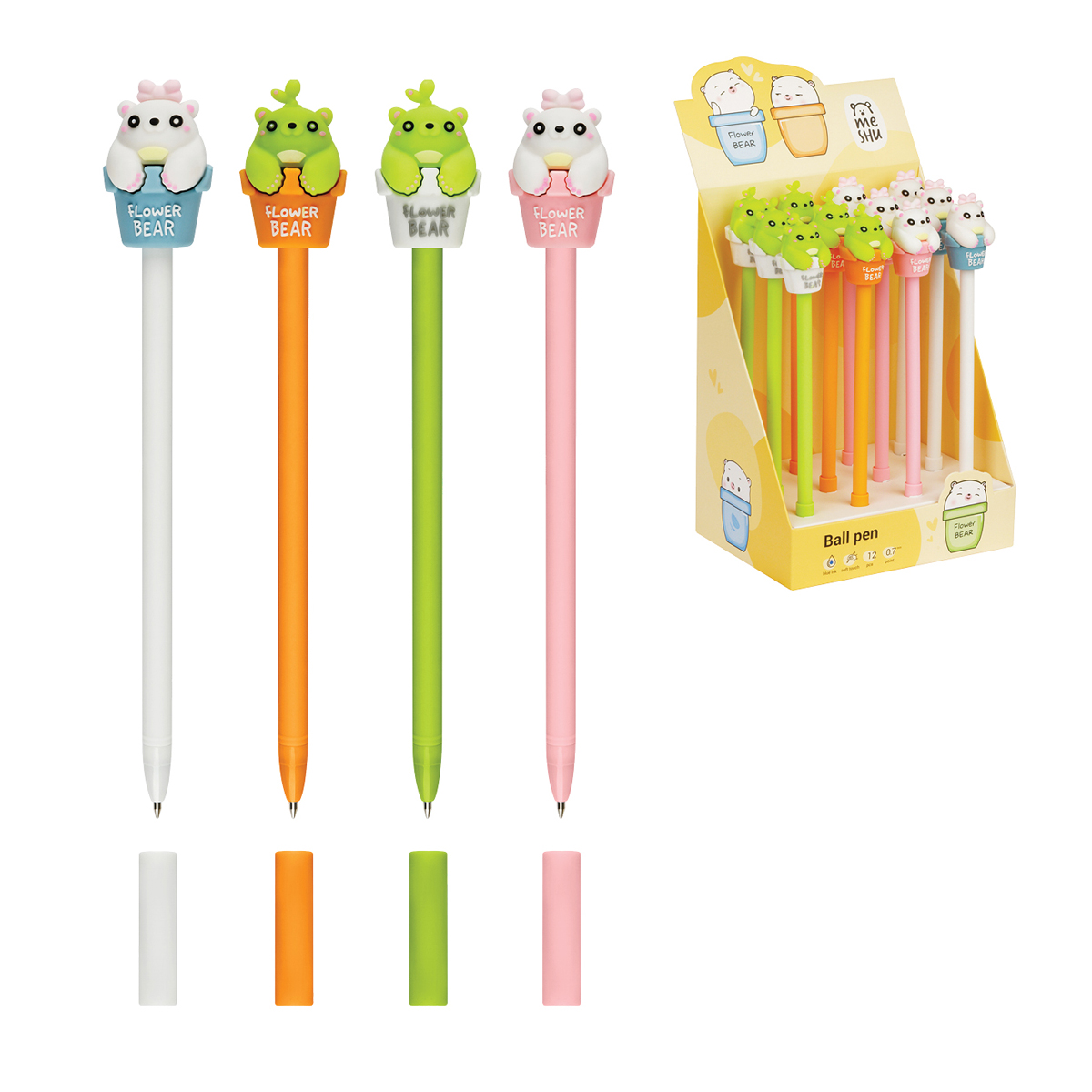 Ручка Meshu Flower bear шариковая синяя станет ярким атрибутом отличного настроения на работе или учёбе. Диаметр пишущего узла – 0,7 мм. Ручка прекрасно подойдёт для мягкого и быстрого письма. Толщина линии письма – 0, 5 мм, а длина письма может достигать от 450 до 500 метров. Ручка обладает необычным дизайном: корпус ярких цветов дополняет милая игрушка в виде медвежонка в цветочном горшке. У ручки есть пластиковый колпачок, который гарантирует, что изделие не повредится в сумке и не оставит следов на посторонних предметах. Благодаря чернилам синего цвета ручку можно ежедневно использовать в работе или учёбе. Изделие предусматривает возможность замены стержня длиной 115 мм. Ручки упакованы в картонную коробку-дисплей.
