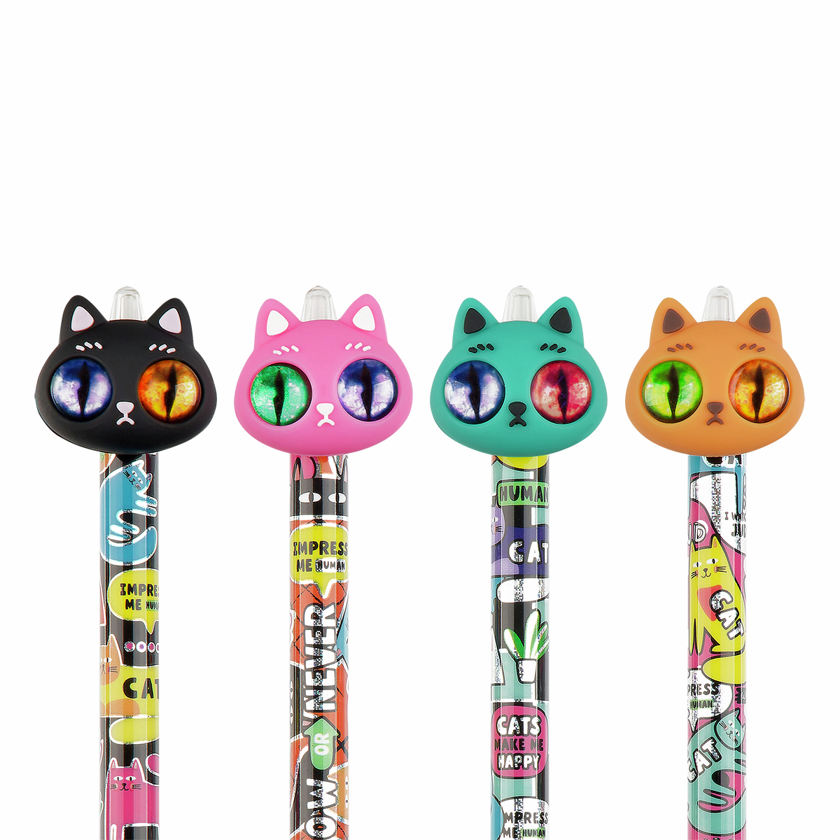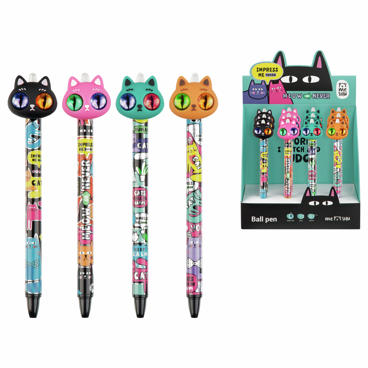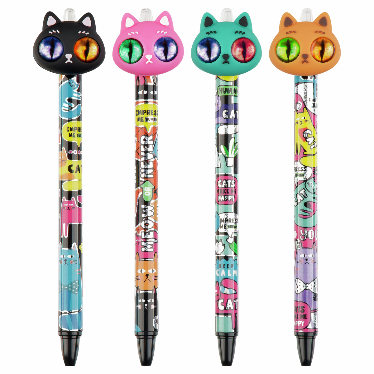 Шариковая автоматическая ручка Hypno Cats от Meshu - незаменимый помощник для учёбы или работы. Необычный дизайн ручки дополняет топпер-игрушка.