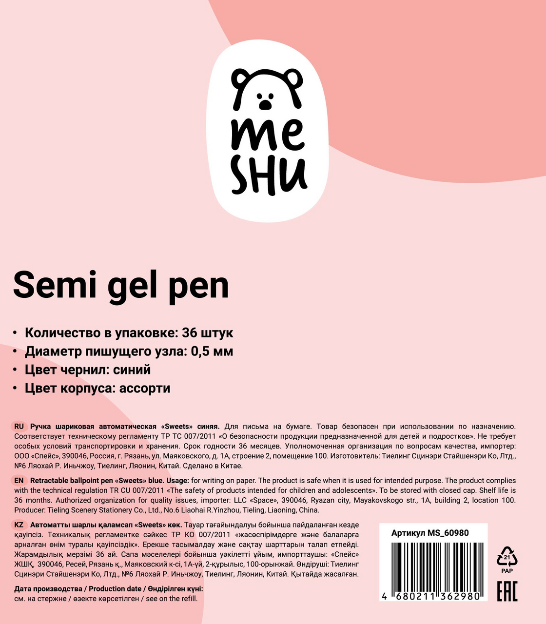 Ручка шариковая Meshu Sweets синяя автоматическая, 0.7мм