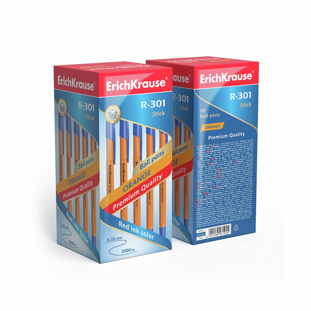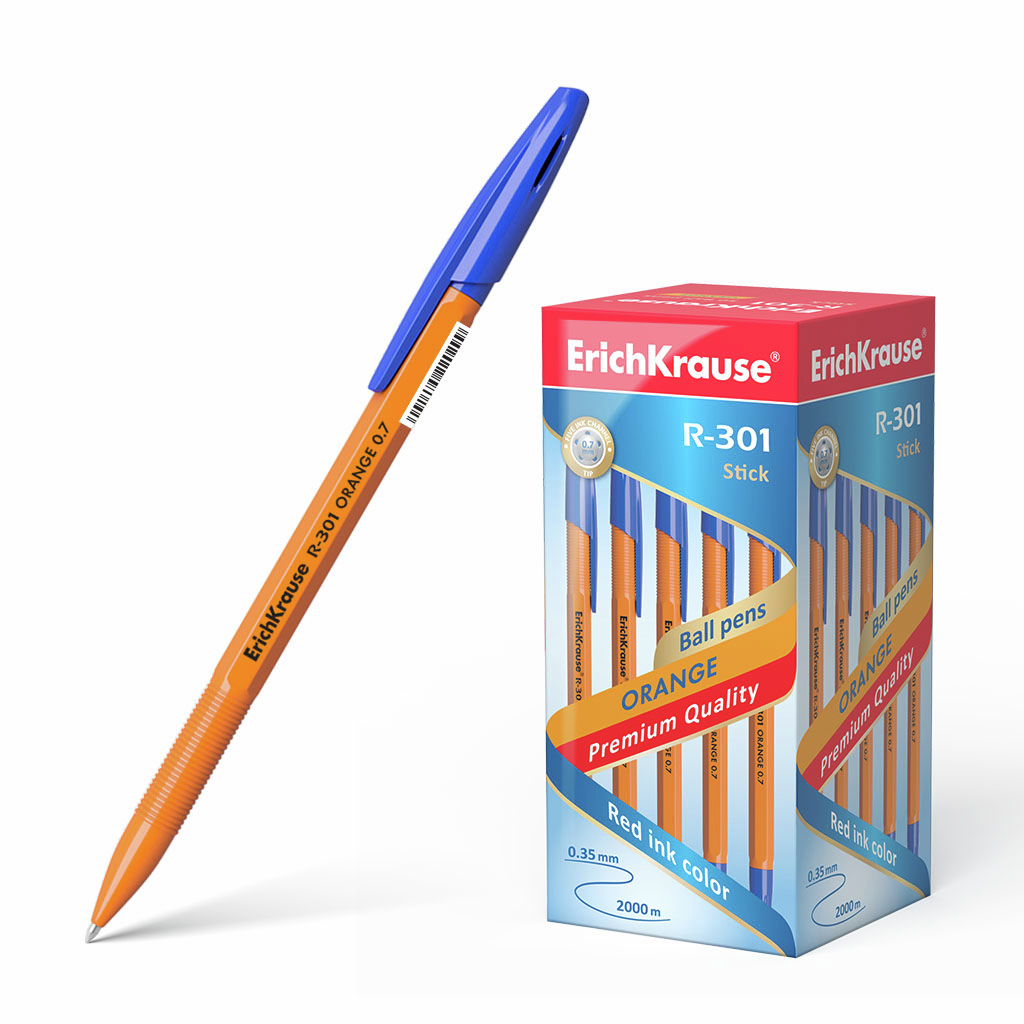 Классическая шариковая ручка Stick со стандартным типом пишущего узла и заменяемым стержнем. Ручка имеет непрозрачный оранжевый шестигранный корпус с удобной профилированной грип-зоной и вентилируемый колпачок. Цвет колпачка и заглушки соответствует цвету чернил. 5-канальный пишущий узел с диаметром шарика 0.7 мм в сочетании с быстросохнущими чернилами обеспечивает мягкое и быстрое письмо. Длина непрерывной линии составляет 2000 м при толщине 0.35 мм, что является одним из лучших показателей в своей категории. Модель R-301 Orange 0.7 Stick имеет узнаваемую запатентованную форму и стала одним из бестселлеров в ассортименте шариковых ручек ErichKrause более чем в пятидесяти странах мира.