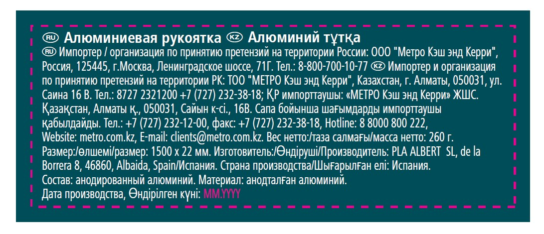 METRO PROFESSIONAL Рукоятка алюминиевая, 150см