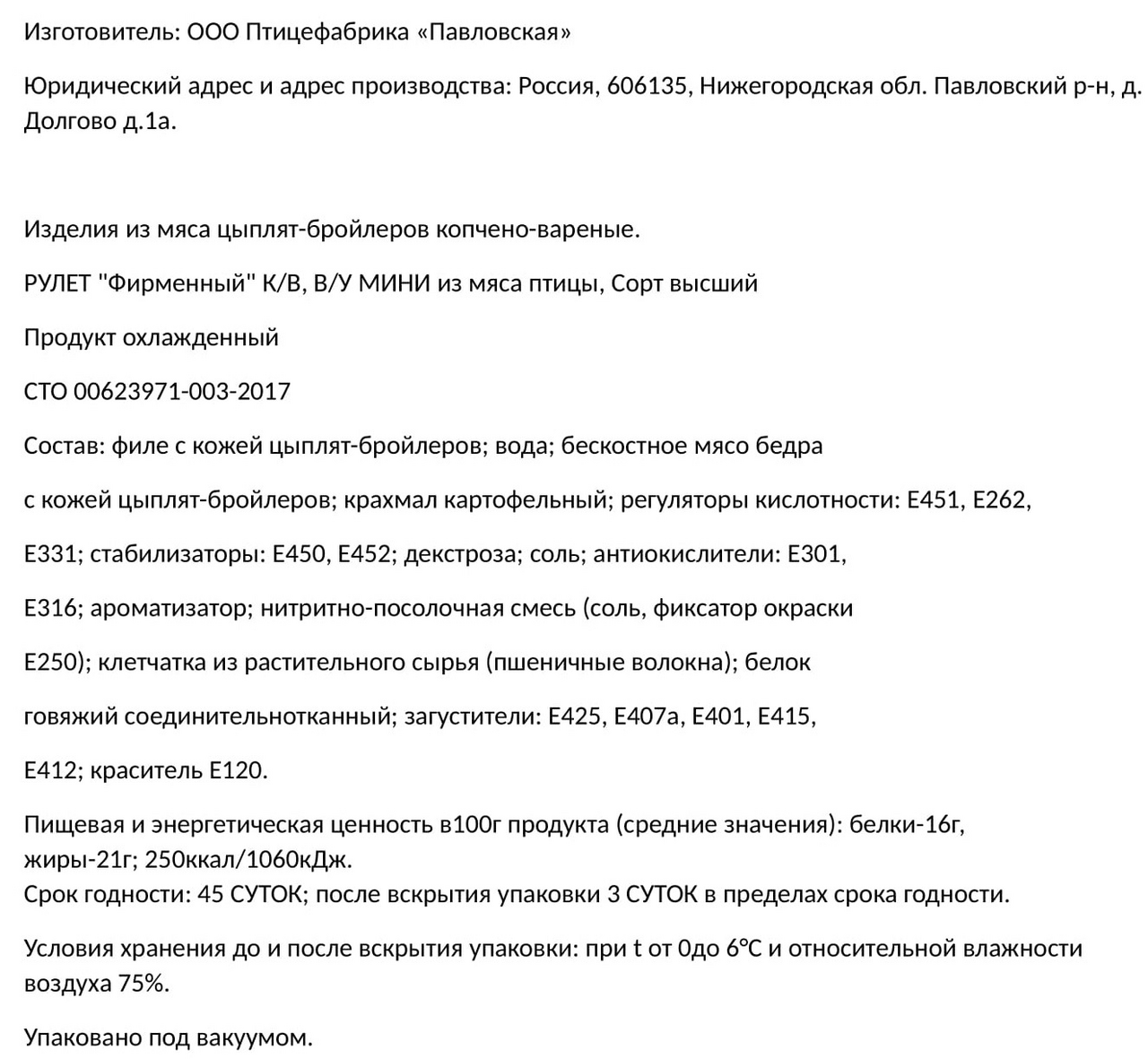 - Тип упаковки Вакуумная упаковка