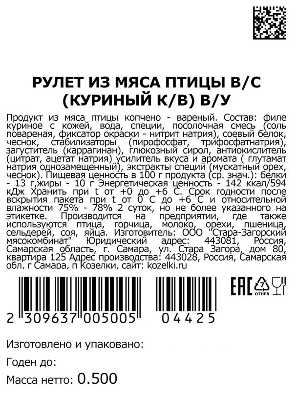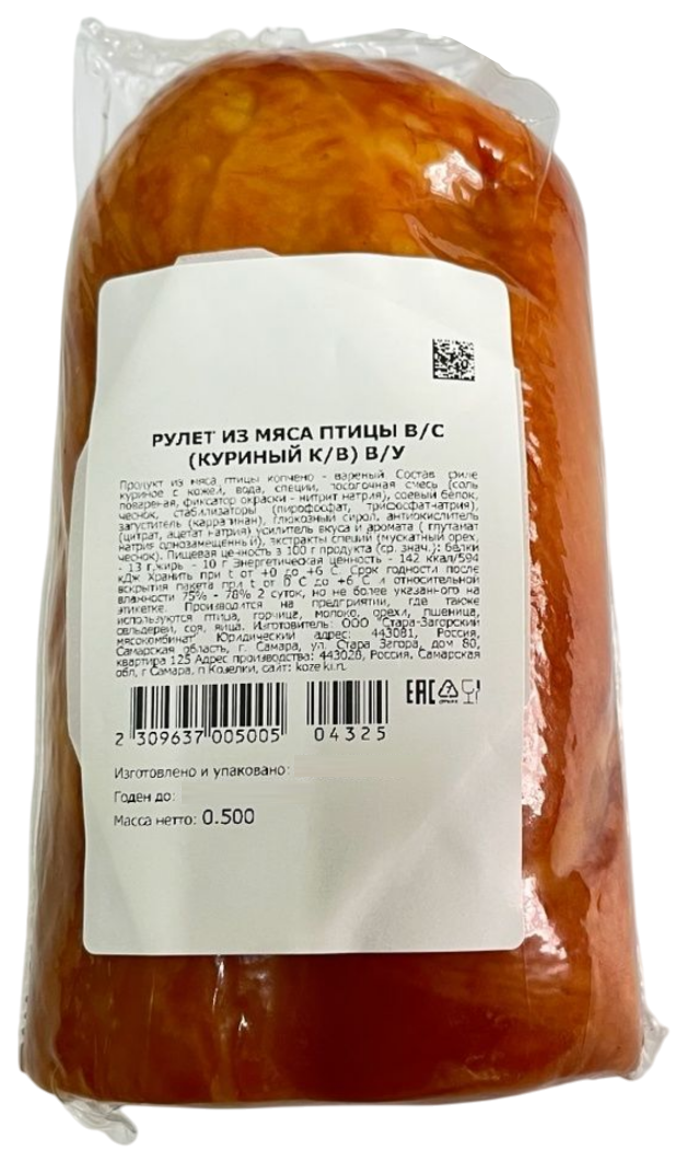 Рулет Козелки из мяса птиц копчено-вареный, ~300г