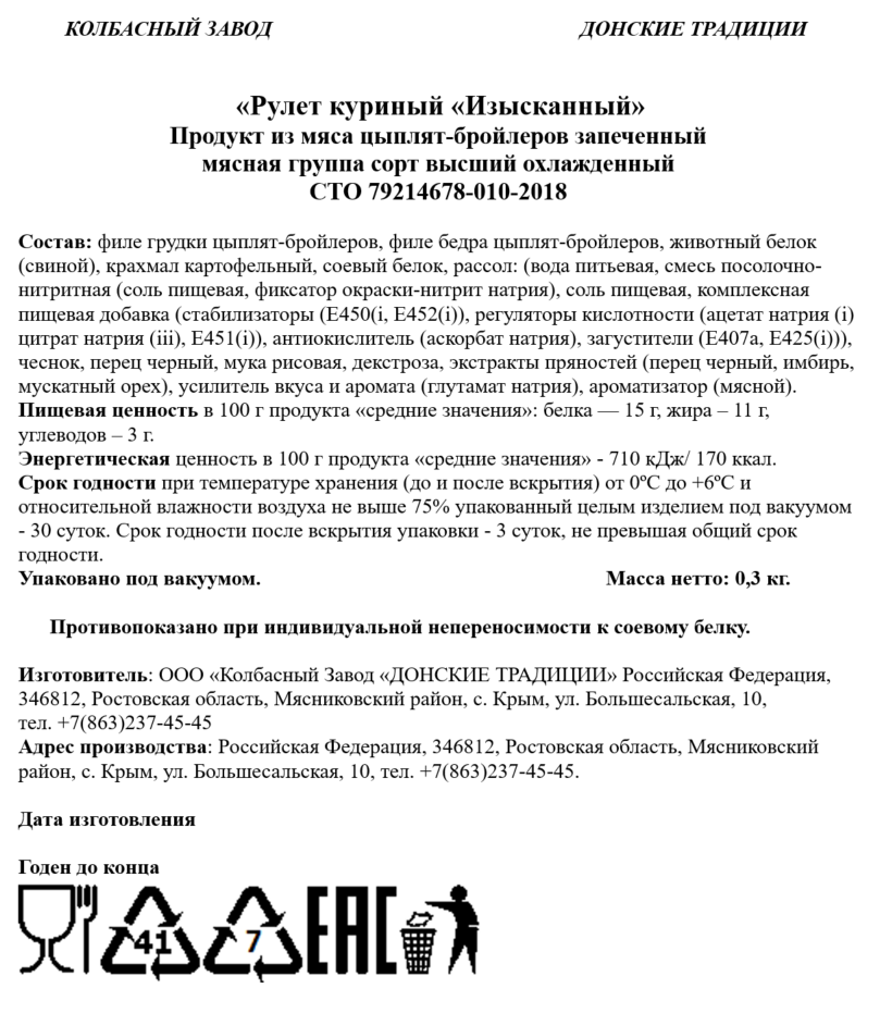 Рулет куриный Донские традиции Изысканный, 300г