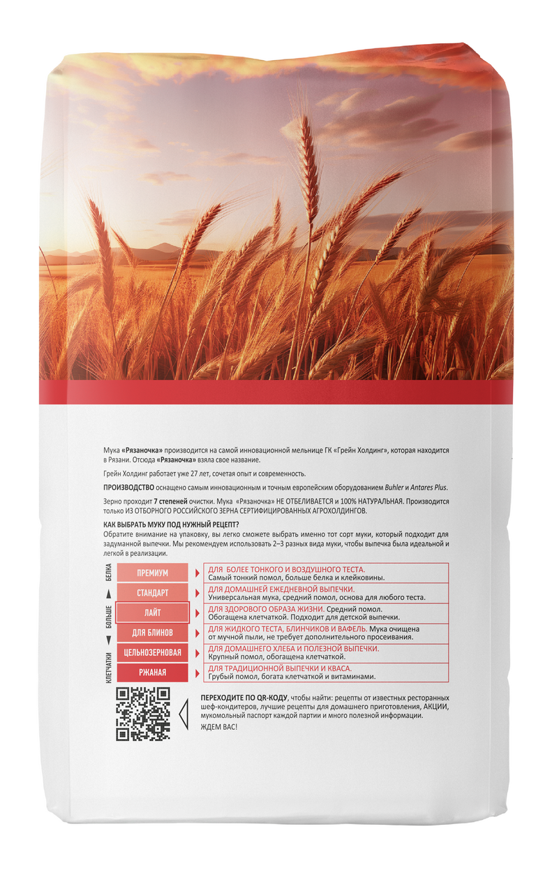 Мука Рязаночка экстра идеально подойдет для приготовления нежной, тающей во рту выпечки. В процессе изготовления этой муки используется только сердцевина зерна. На выходе получается качественный продукт с очень мелкой рассыпчатой текстурой. Для организации производственного процесса используются современные технологии, оборудование по последнему слову техники и отборное сырье, поэтому вам гарантированы легкий замес теста и неизменно превосходный результат.
