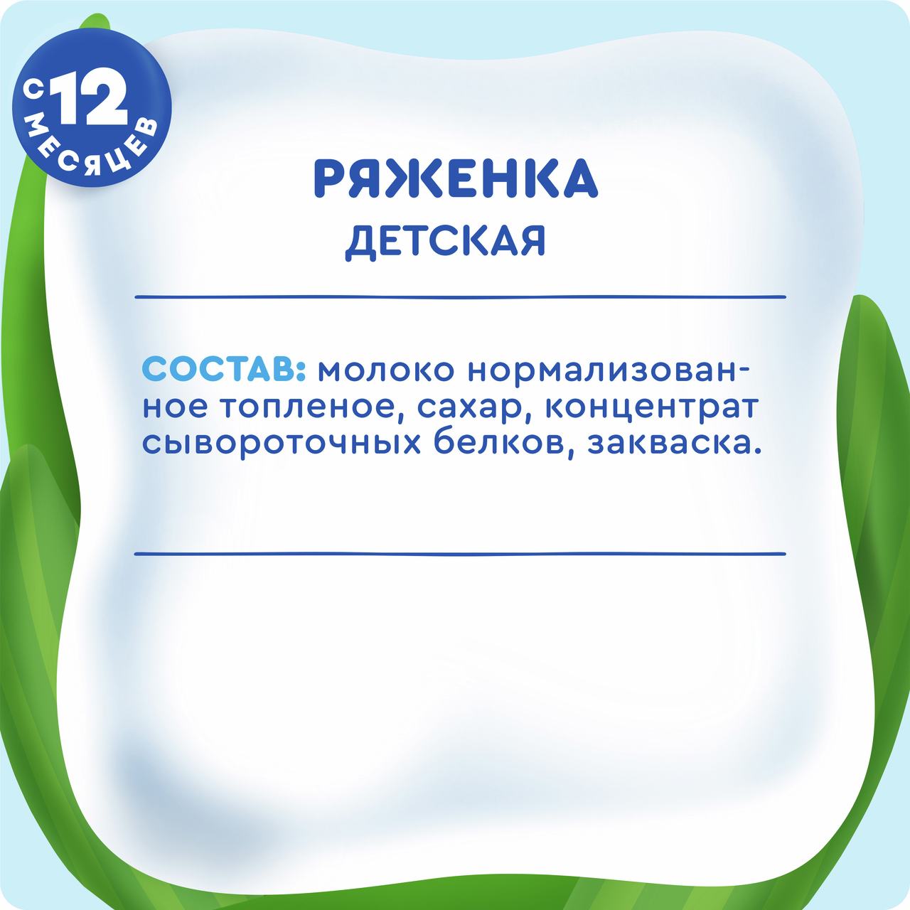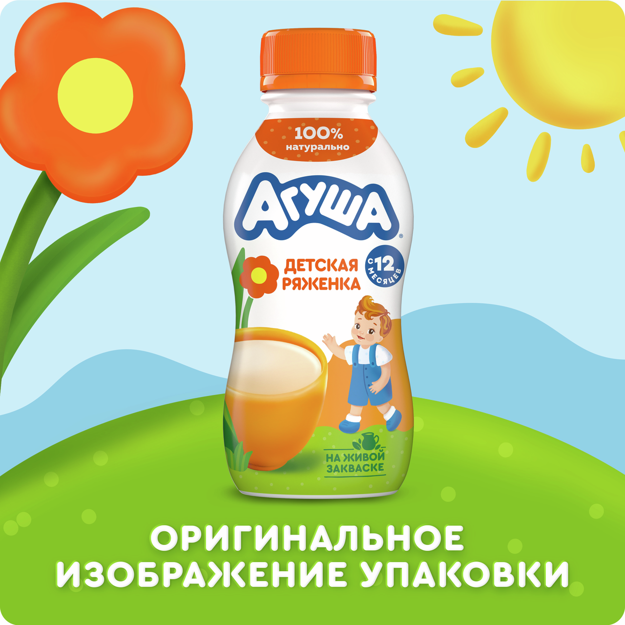 Сладкая детская ряженка Агуша – кисломолочный напиток для питания детей старше 12 месяцев. Продукт производится на основе топленого молока и живой кисломолочной закваски, благодаря чему приобретает густую консистенцию._x000D_ Детская ряженка может дополнить перекус в течение дня и разнообразит рацион малыша. _x000D_Помимо ряженки Агуша предлагает творог, кефир, йогурт – это тоже важная часть рациона подрастающего малыша._x000D_ Разработана специально для детей - на отборном топленом молочке и живой закваске_x000D_. 100% натуральная_x000D_. Без сухого молока и заменителей молочного жира_x000D_. Без добавления консервантов, ароматизаторов, красителей_x000D_. Содержит кальций для здорового роста малыша.