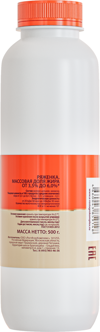 Ряженка А.Ростагрокомплекс 3.5 -6%, 500г