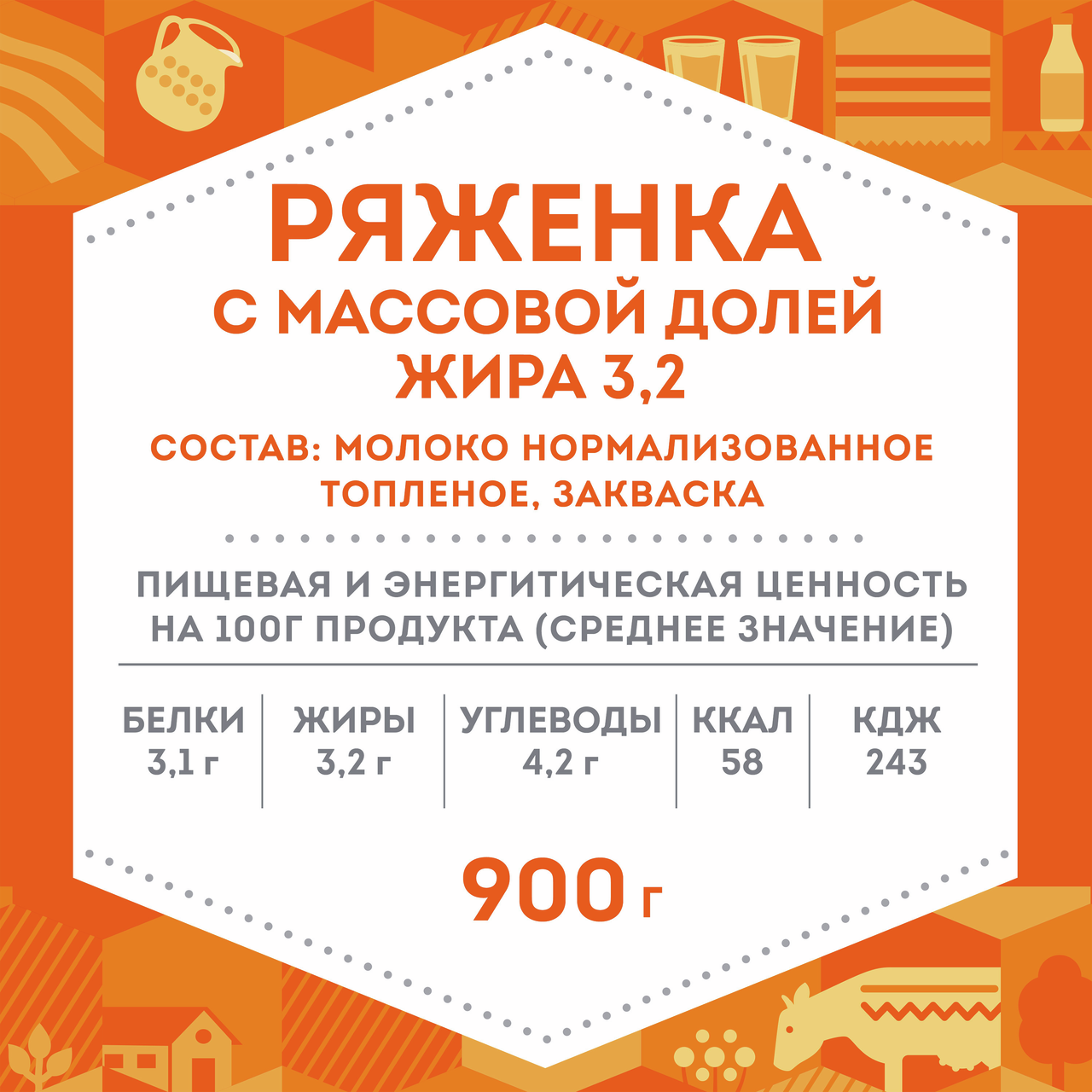 Ряженка Домик в деревне из топленого молока 3.2%, 900г