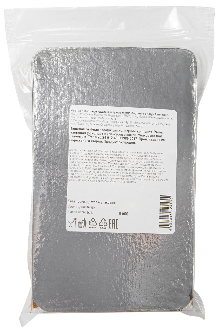 Рыба масляная филе-кусок холодного копчения охлажденная, 500г