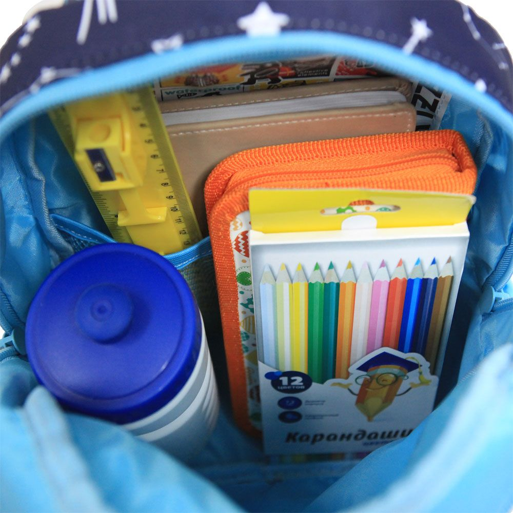Рюкзак Grizzly RK-177 детский Космозавр - стильный, легкий и практичный рюкзак станет незаменимым аксессуаром для ребенка. С ним очень удобно ходить в садик или на развивающие кружки, ездить в гости или просто брать его на прогулку. В рюкзак поместиться все необходимое: и блокнот, и игрушка, и контейнер с едой. А специальный карман из сетки с резиночкой не даст рассыпаться карандашам и фломастерам или сломаться хрупким предмета��. Впереди есть кармашек на молнии для разных мелочей, а в боковые карманы можно поместить бутылочку с водой. Имея такой аксессуар, ребенок быстрее приучится к порядку и ответственности за свои вещи. Мягкая спинка и регулируемые лямки делают рюкзачок очень комфортным, а светоотражающие элементы со всех сторон обеспечивают дополнительную безопасность в условиях недостаточной видимости. Материал с водо- и грязеотталкивающей пропиткой. Есть ручка для переноски. Рюкзак можно стирать в стиральной машине.