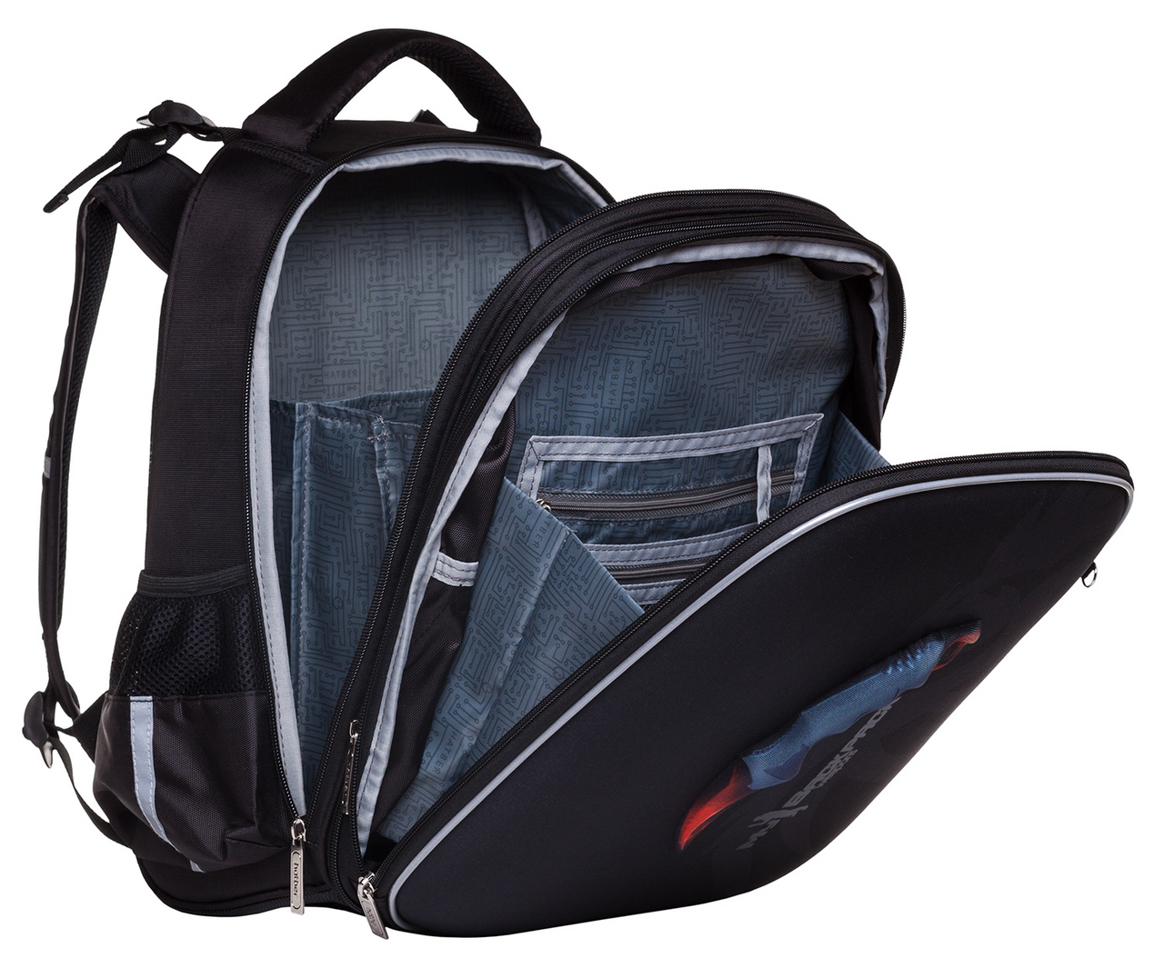 Школьный ранец серии ERGONOMIC LIGHT выполнен из современного пористого EVA-материала с покрытием из высококачественного полиэстера, устойчивого к выгоранию. Для удобства в эксплуатации имеются мягкая широкая ручка для переноски и ручка-петля для подвешивания рюкзака на крючок. Анатомическая вентилируемая спинка и широкие лямки обеспечивают плотную фиксацию ранца и равномерно распределяют нагрузку на спину. Содержимое такого ранца всегда будет в полном порядке благодаря надежному жесткому корпусу. Внутри рюкзак имеет отделение на липучке, а также карман-сетку. Имеются боковые вместительные карманы на резинке.Дно выполнено из водонепроницаемого ПВХ и дополнительно оснащено пластиковыми ножками для защиты от загрязнений и влаги. Светоотражающие элементы со всех сторон обеспечивают безопасность ребенка в темное время суток.