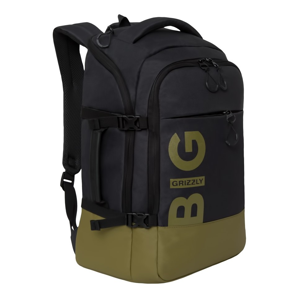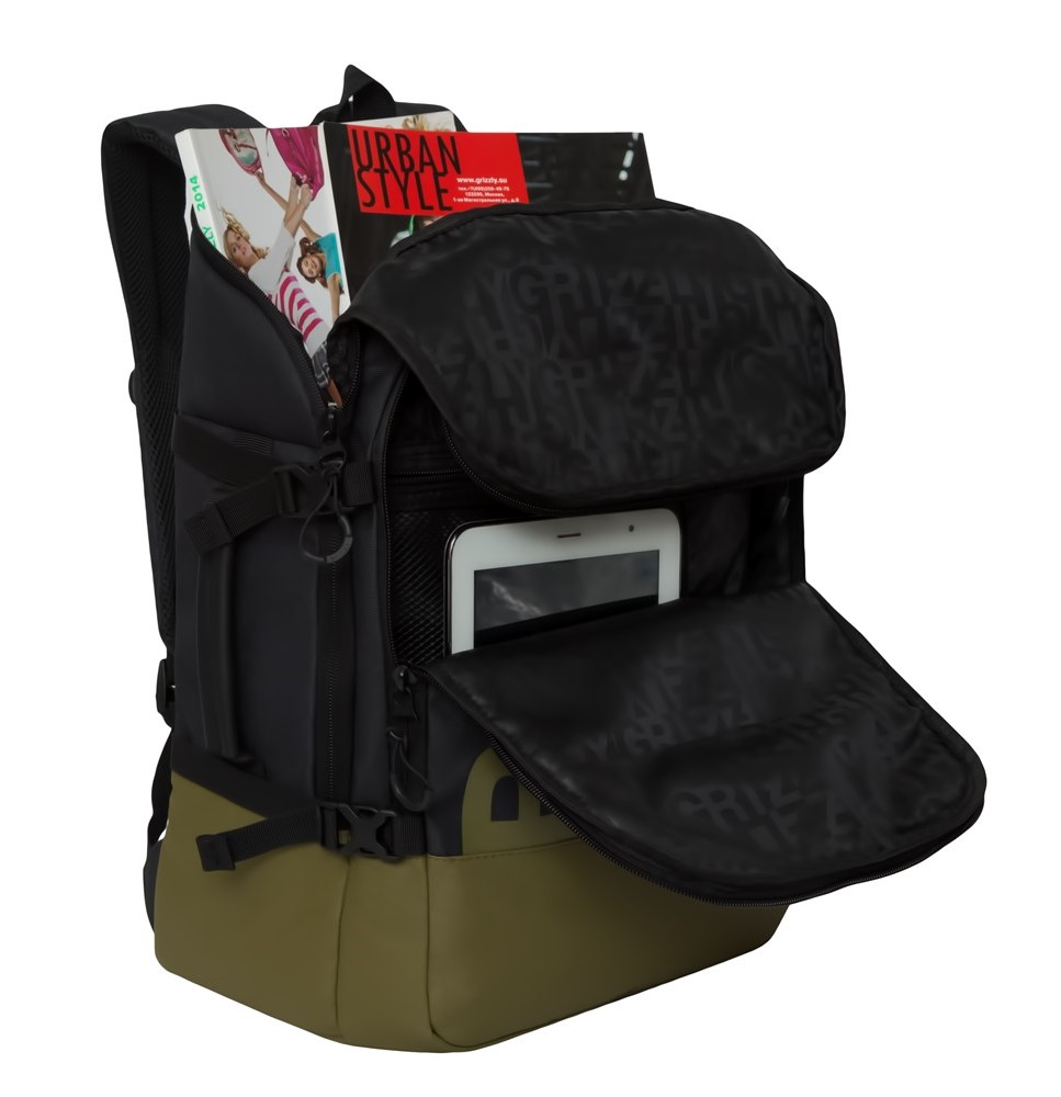 Рюкзак Grizzly RQ-019 черный-хаки 21/3