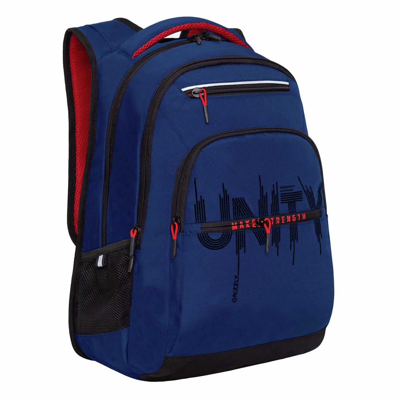 Рюкзак Grizzly синий RU-331 - этот молодежный рюкзак Grizzly мы разработали для учащихся средней и старшей школы. Но подходит он и для взрослых. В рюкзаке общим объемом 17 л два полноценных отделения: для книг, документов А4, принадлежностей или сменки, в том числе есть карман для ноутбука до 13” Предусмотрено много кармашков: 2 боковых, 3 снаружи и внутренние. В такой рюкзак помещается много вещей. Дно твердое, рюкзак не будет провисать. Чтобы уменьшить нагрузку на спину, мы предусмотрели анатомическую спинку с поддержкой позвоночника, лямки особой формы и нагрудную стяжку со свистком. Нагрузка распределяется по поверхности, подростки меньше устают и сохраняется здоровой осанка. Для безопасности установили со всех сторон светоотражатели. Все швы прочные, ровные и аккуратные, наиболее нагруженные участки дополнительно усилены. Материал с водо- и грязеотталкивающей пропиткой. Рюкзак надолго остается, как новый. Если он все же чем-то испачкался, мы рекомендуем ручную стирку в холодной воде