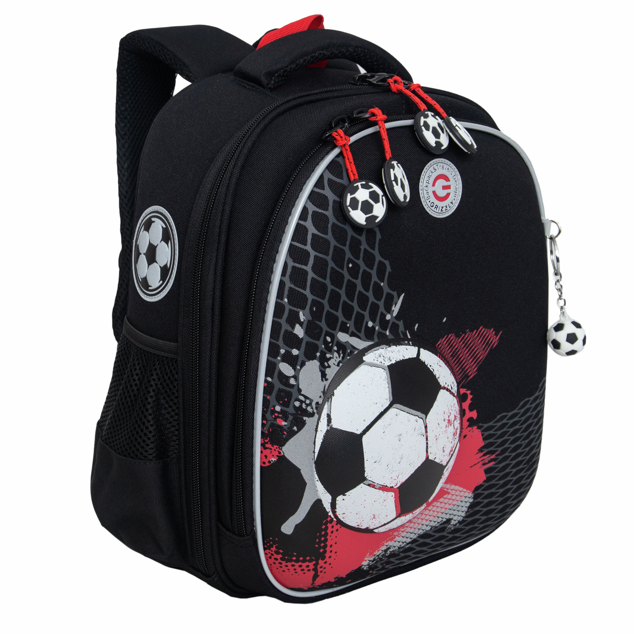 Рюкзак Grizzly школьный черный-красный RAZ-487