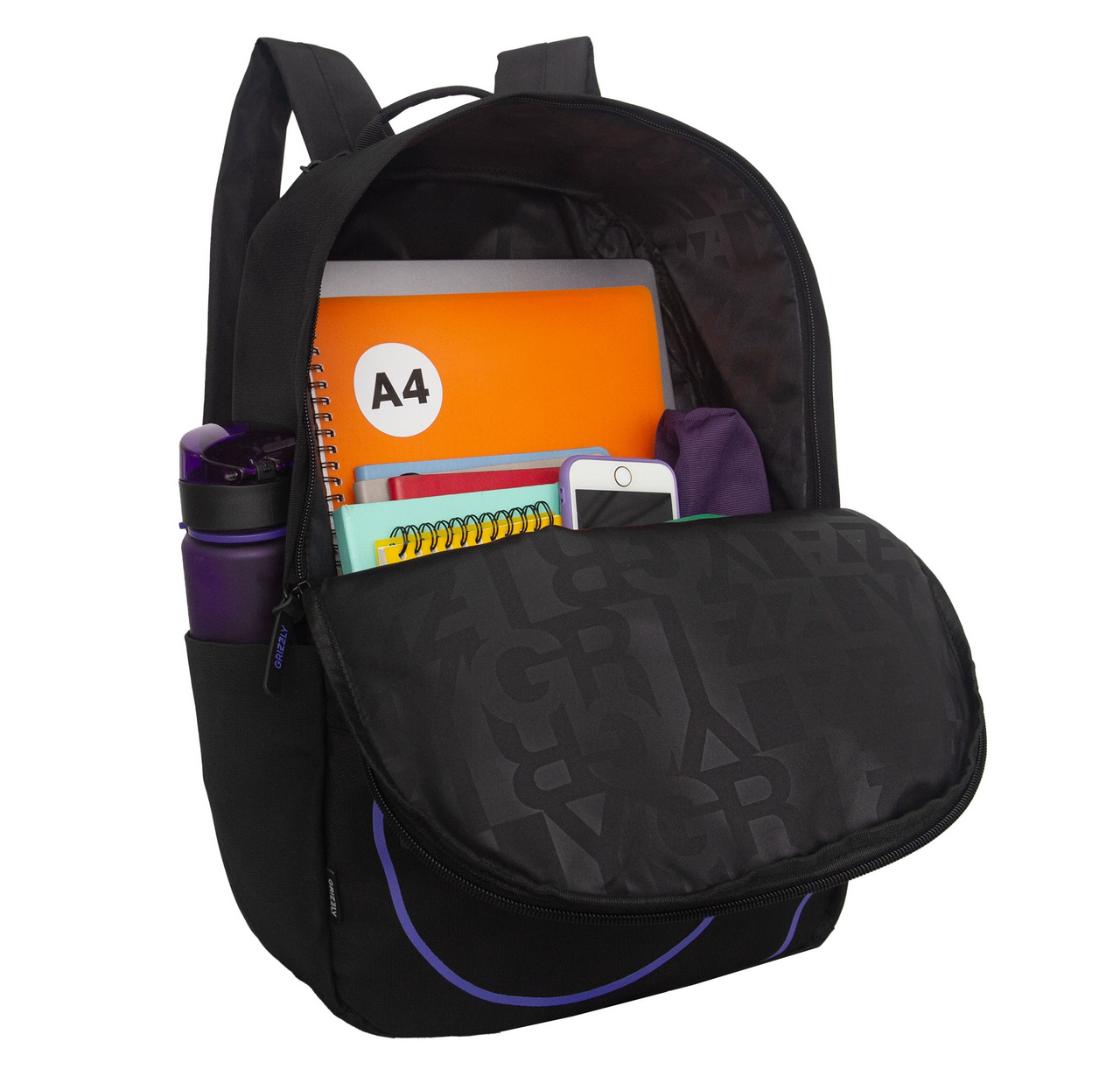Рюкзак Grizzly черный-фиолетовый 1/3 RQL-614