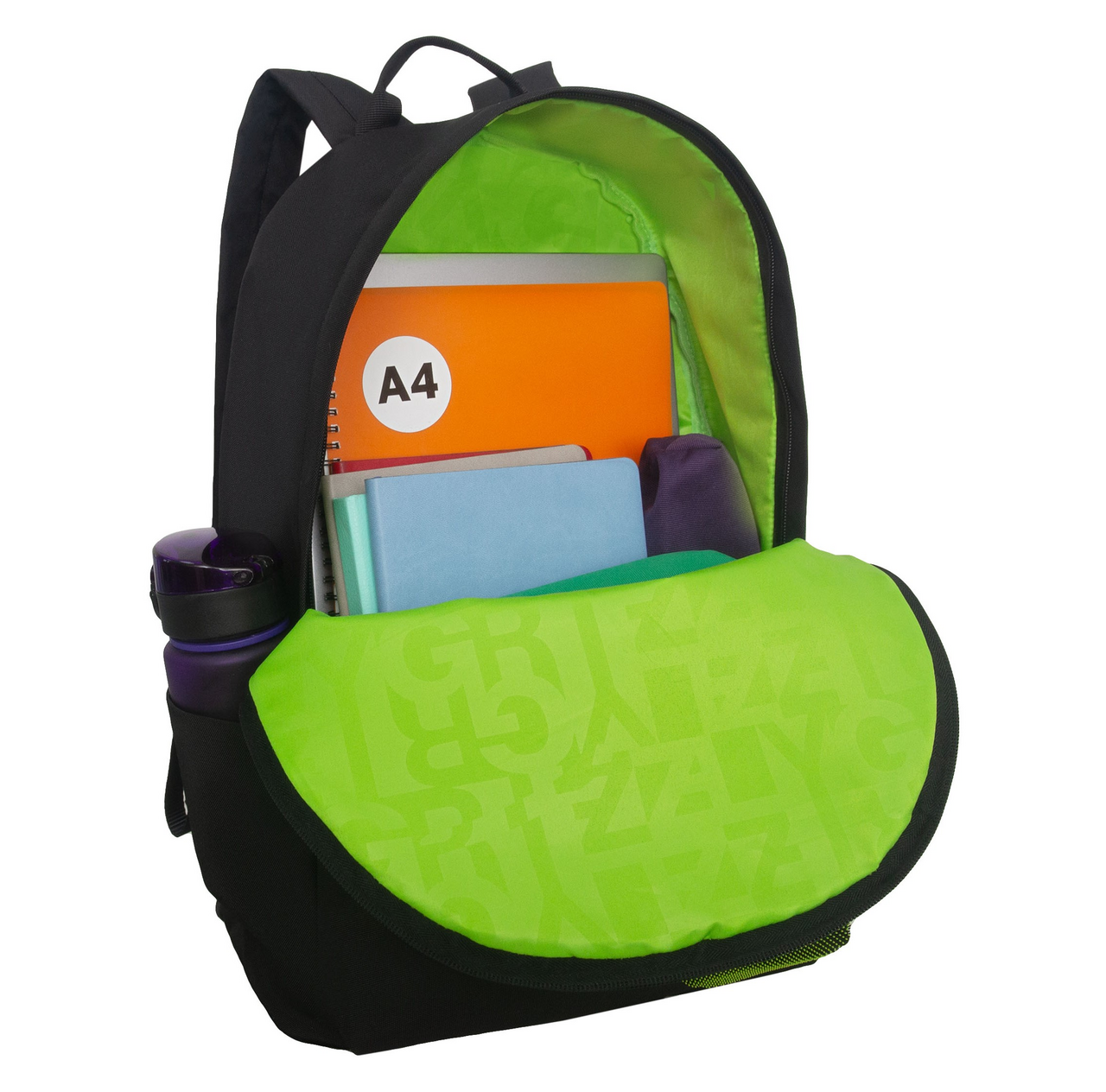 Рюкзак Grizzly черный-салат 5/3 RQL-617