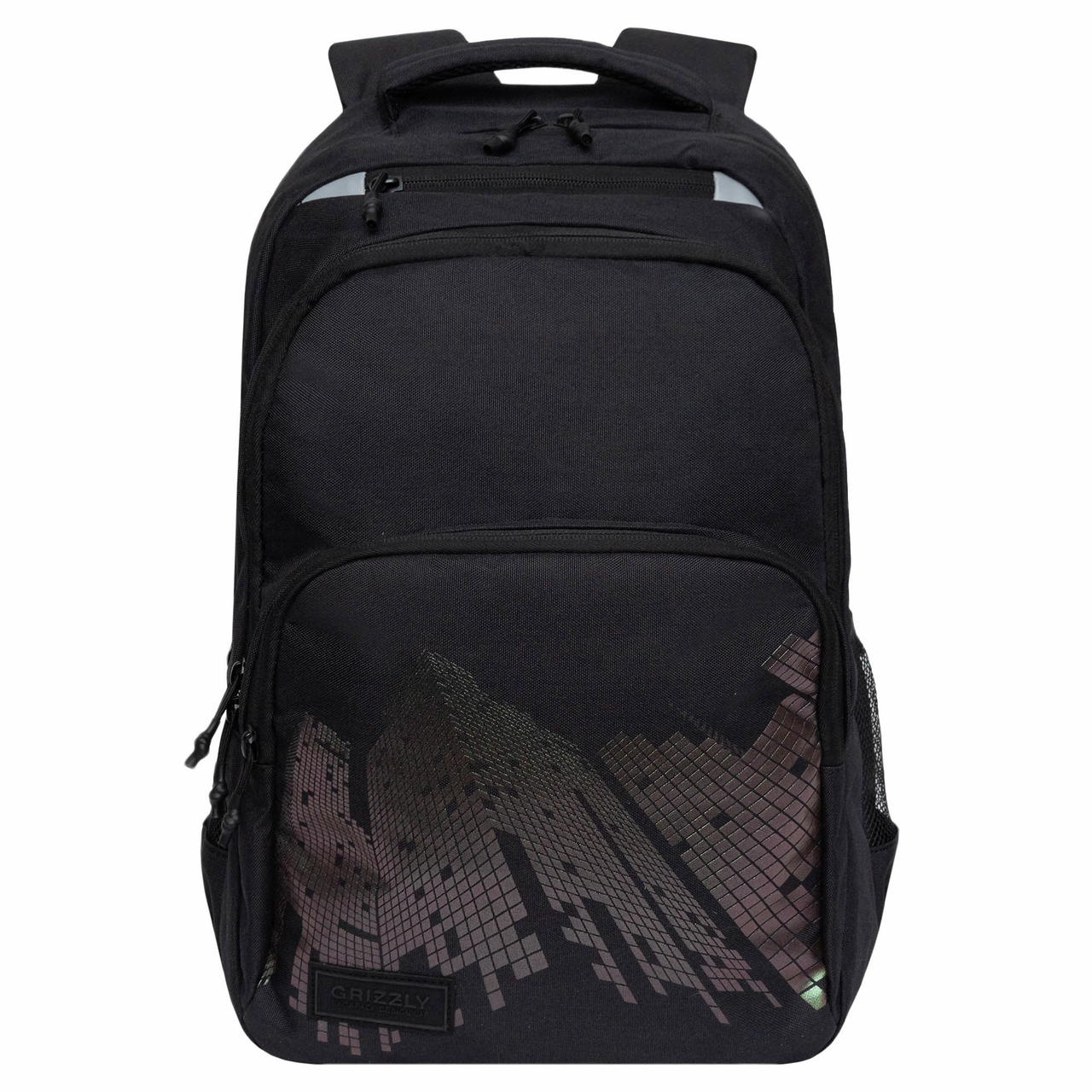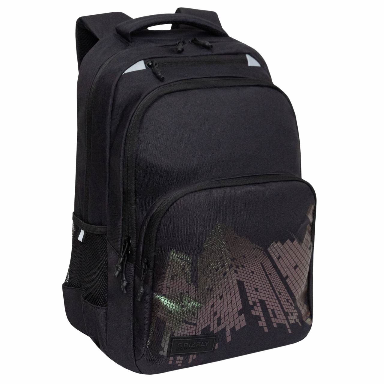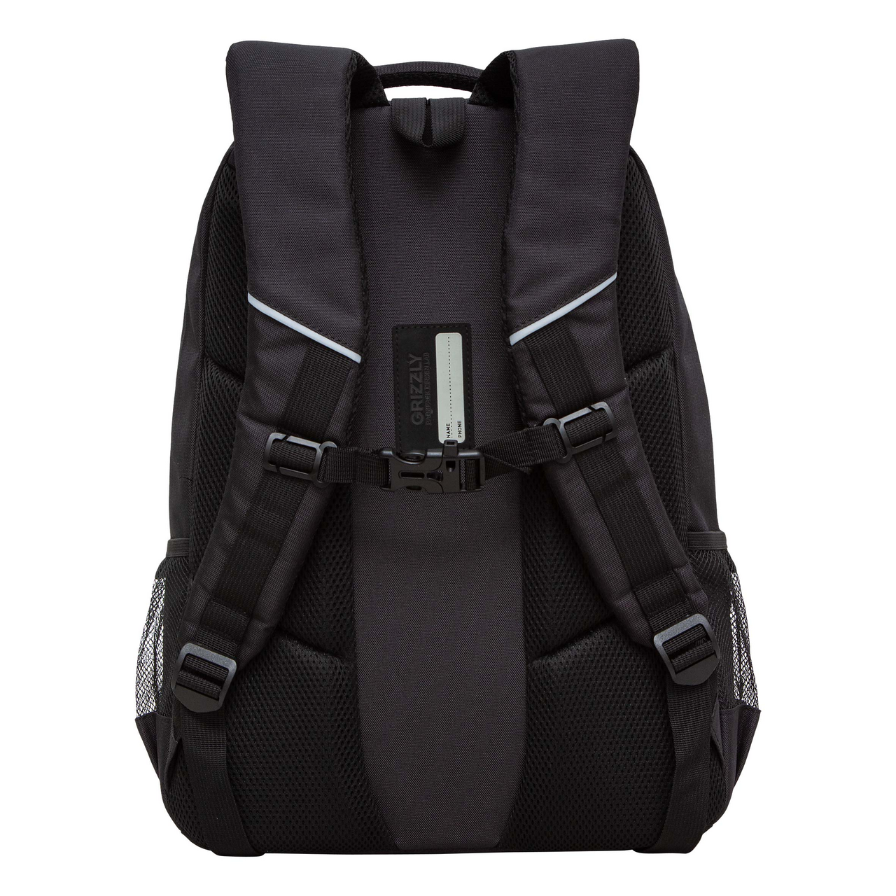 Рюкзак Grizzly черный RU-430 - эту серию рюкзаков Grizzly разработали для мальчиков старших классов. Они рассчитаны на рост от 150 см. Рюкзаки яркие и стильные — нравятся подросткам. Рюкзак сделан из плотного полиэстера и хорошо держит форму. Есть светоотражающие элементы. Все швы аккуратно прошиты, а где это нужно, усилены дополнительно. Допустимая нагрузка 7 кг. Чтобы от такого веса не пострадала осанка, мы сделали анатомическую спинку. Широкие лямки с нагрудной стяжкой со свистком снижают нагрузку на плечи. Несмотря на то, что подросткам приходится носить с собой много вещей, в школьный рюкзак они помещаются. Здесь есть два больших основных отделения для книг, тетрадей и папок А4. Много внутренних и внешних карманов, пенал, брелок для ключей, отделение быстрого доступа для документов и кошелька. Материал рюкзака с водо- и грязеотталкивающей пропиткой. Если рюкзак все же чем-то испачкался, мы рекомендуем ручную стирку в холодной воде.