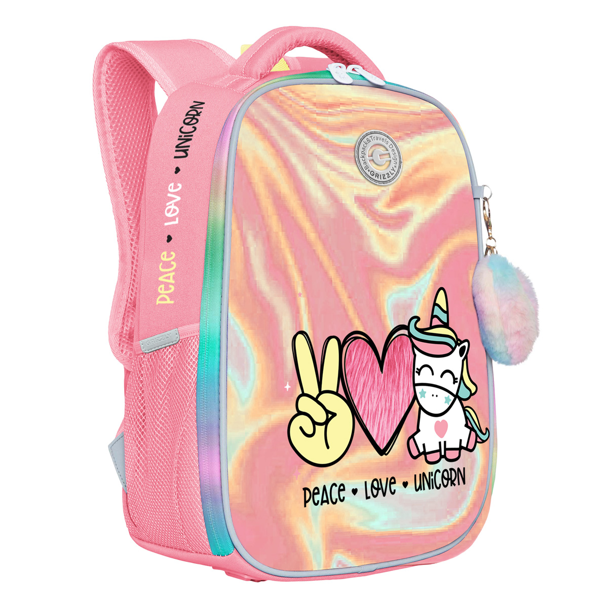 Рюкзак Grizzly RAW-396 школьный розовый - новая серия ранцев RAW разработана для детей школьного возраста ростом от 125 до 140 см. Передняя стенка создает дополнительную защиту содержимого, а твердое дно на резиновых ножках препятствует провисанию рюкзака. Эти ранцы легкие, но при этом надежные. Анатомическая спинка, нагрудная стяжка со свистком и удобные лямки позволяют равномерно распределять нагрузку на спину и плечи. У рюкзака одно отделение для пособий, книг, тетрадей форматом А4, которое состоит из двух отсеков, все лежит по своим местам. Боковые карманы для бутылочки с водой и разных мелочей. Для безопасности в темное время суток мы добавили со всех сторон светоотражающие элементы. Материал рюкзака с водо- и грязеотталкивающей пропиткой. Выбирайте понравившейся Вам принт и добавляйте в корзину.