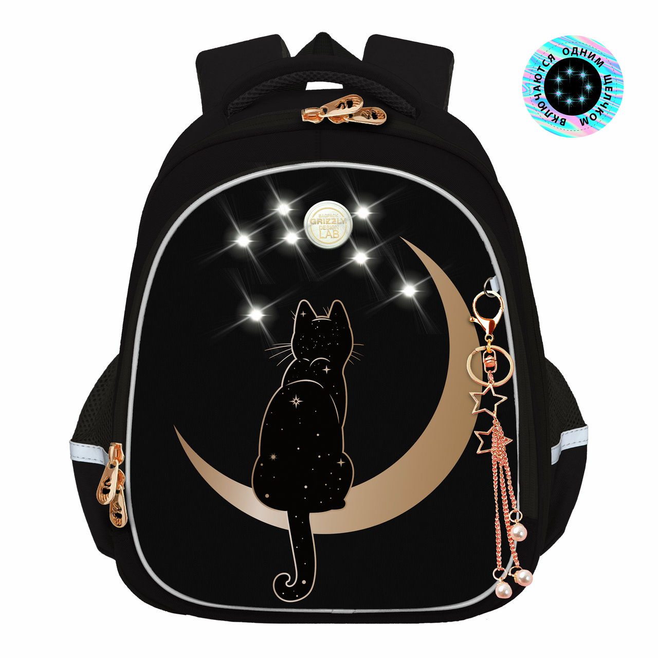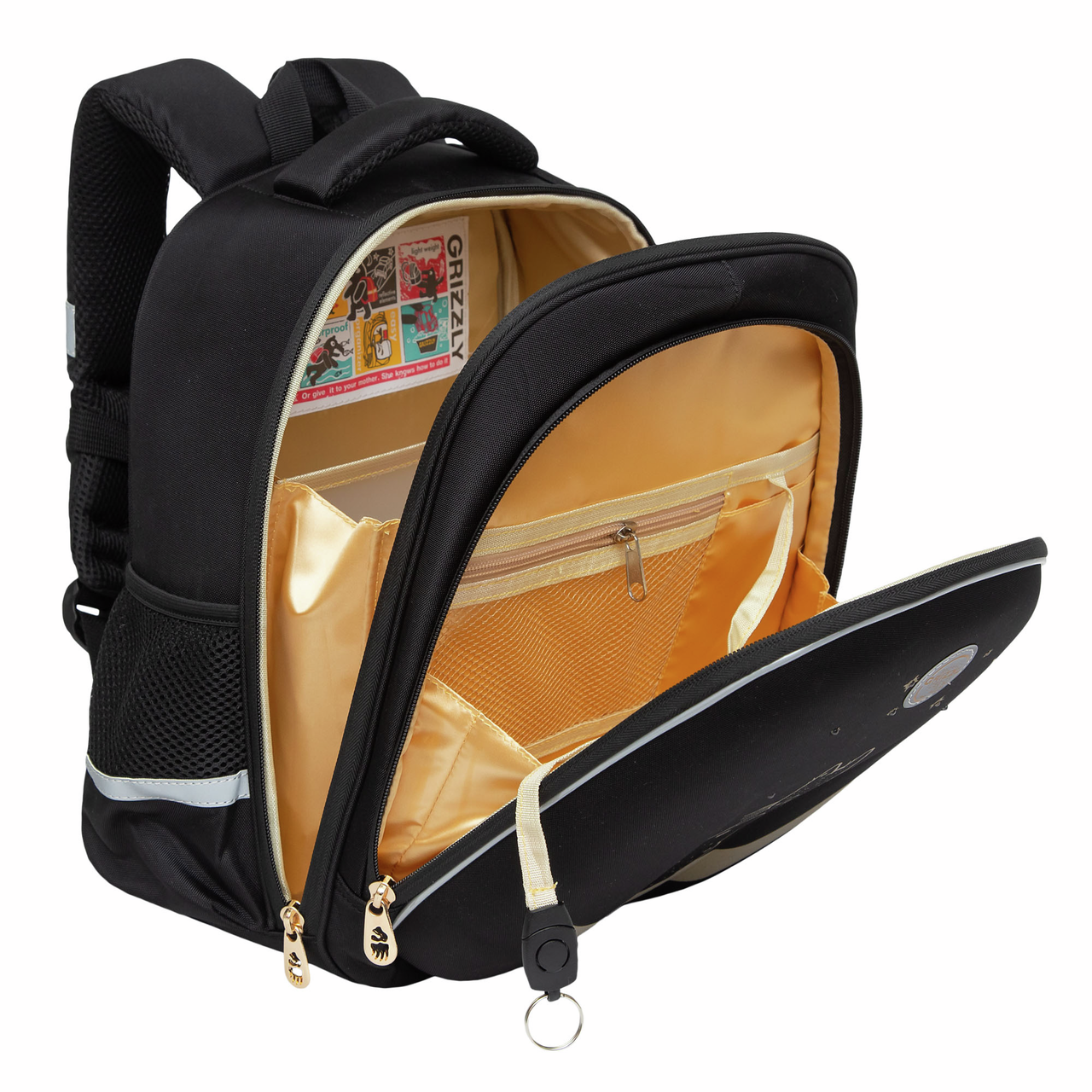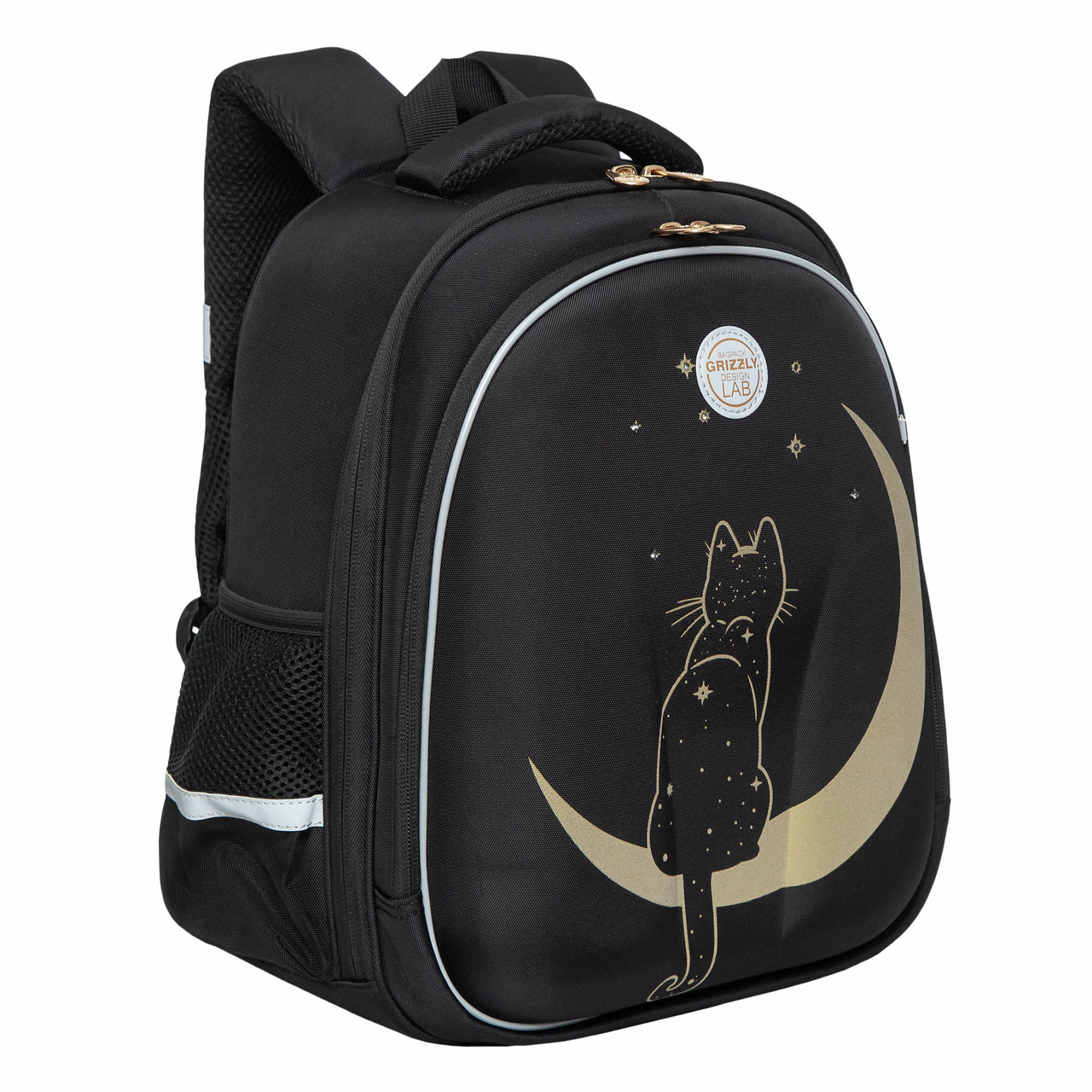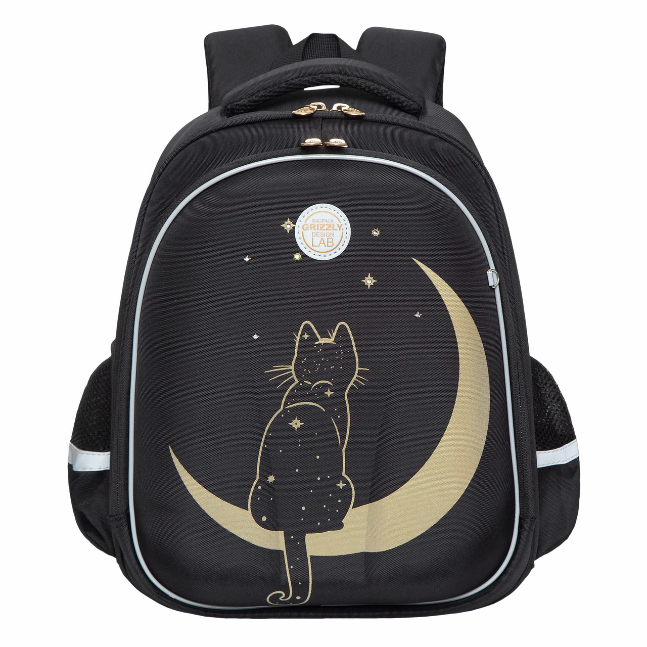 Рюкзак Grizzly RAZ-286 школьный черный - уже с начальных классов детям нужно носить в школьном рюкзаке книги, тетради и сменку. Нагрузки большие и Grizzly помогает с ними справляться. Ранец серии RAz рассчитан на рост от 125 до 135 см. В него поместятся все школьные принадлежности. Основное отделение разбито на три отсека: для книг, тетрадей и папок А4. В дополнительное помещается сменка (есть три кармашка для мелочей). В боковых можно носить воду или перекус. Каждый предмет на своем месте.У рюкзака формованная лицевая часть, жесткая анатомическая спинка и жесткое дно на ножках. Содержимое надежно защищено. Такая конструкция равномерно распределяет нагрузку на спину. Чтобы не уставали руки и плечи, мы сделали широкие лямки и нагрудную стяжку со свитком. Для безопасности в темное время суток мы добавили со всех сторон светоотражающие элементы. За счет водо- и грязеотталкивающей пропитки ранец долго остается как новый. Если он все же чем-то испачкался, мы рекомендуем ручную стирку в холодной воде